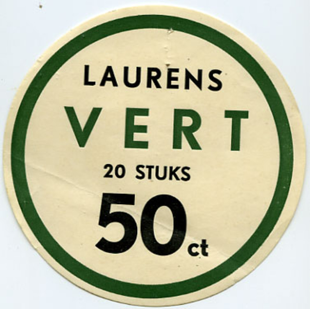 Drie prijskaartjes 'Laurens VERT 20 stuks 50 ct' pap...