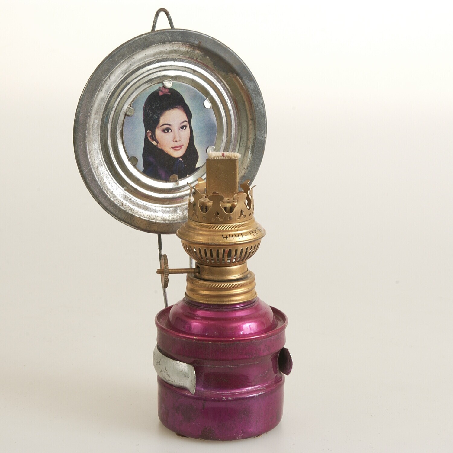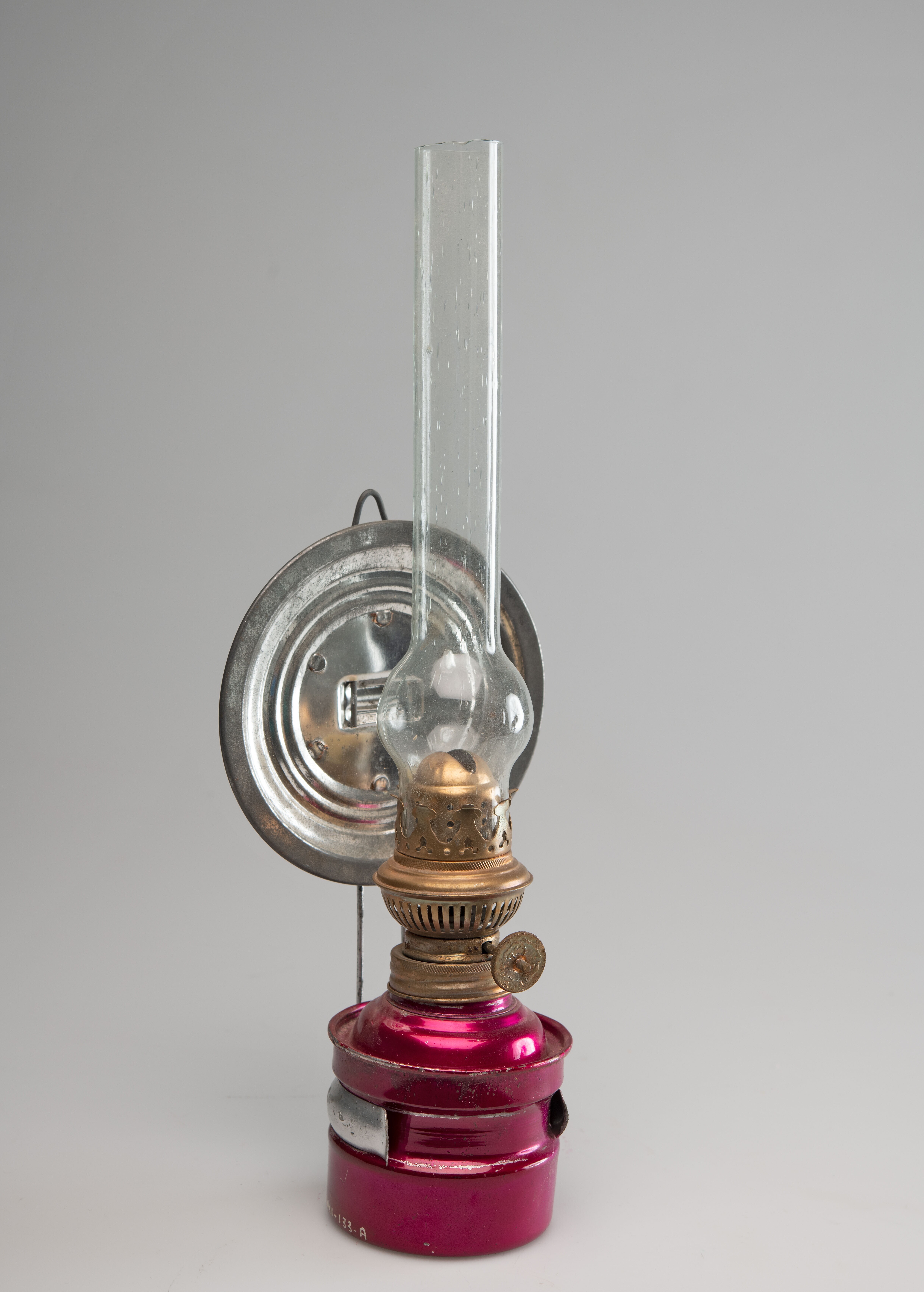 Onderstel van plaatijzer, onderdeel van een olielamp