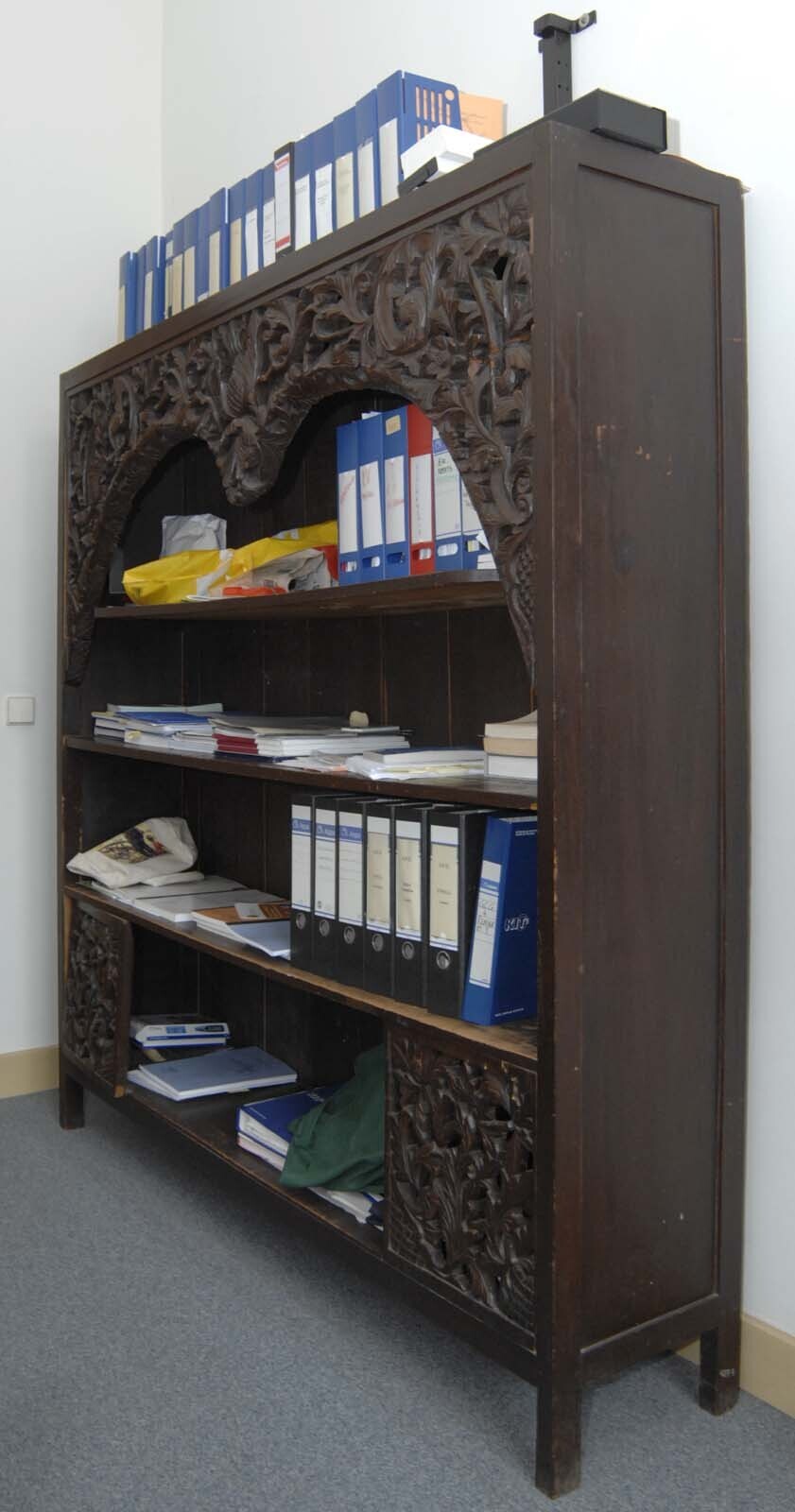 Boekenkast versierd met zonnescherm delen