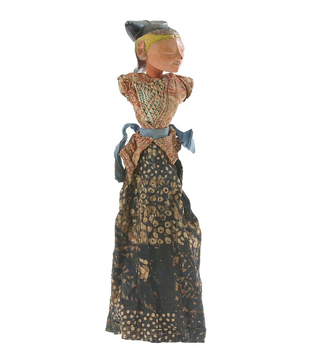 Incomplete ronde houten wayangpop (golek) voorstelle...