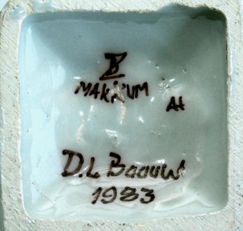 Keramiek spaarpot twaalf kantige kubus op sokkel.