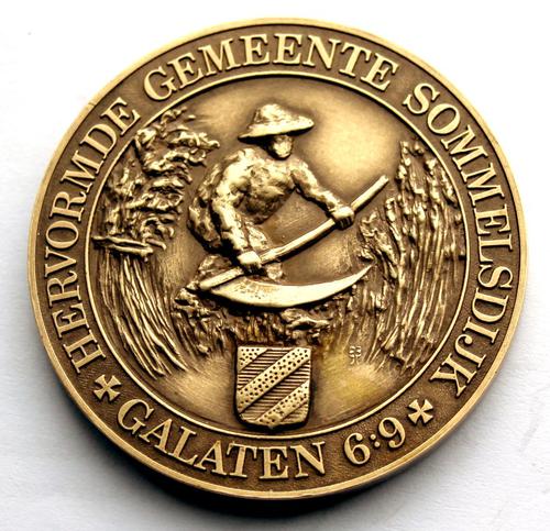 Bronzen herinneringspenning, restauratie Hervormde K...