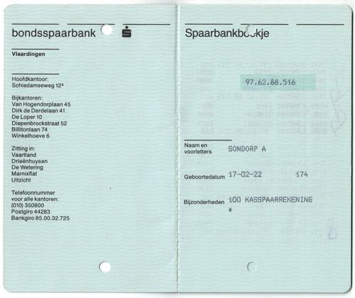 Spaarbankboekje Bondsspaarbank te Vlaardingen