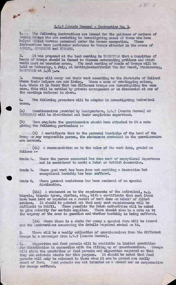 I.S.9 (Awards Bureau) - Instruction No. 1