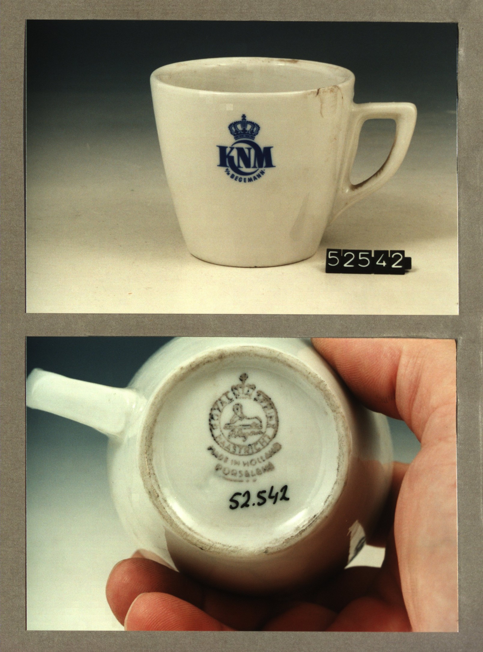 Kop met opschrift, model P met decor KNM v/h Begemann
