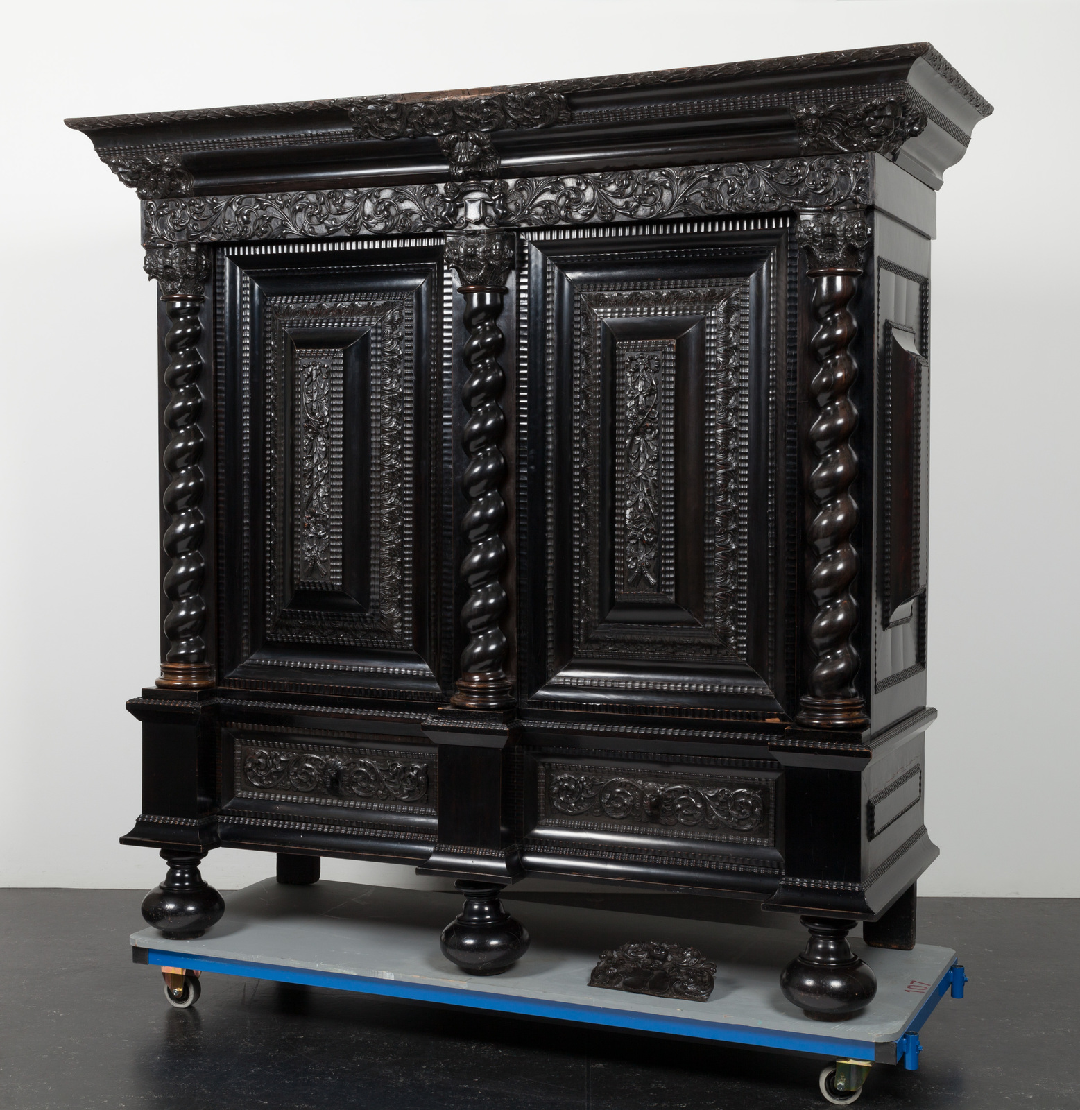 diverse houtsoorten belijmd met padoek- en cederhout, versierd met beschilderde wit marmeren plaquettes (1)