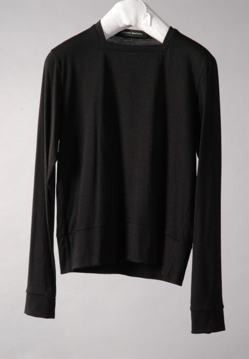 Shirt van zwart katoen met vierkante hals en lange m...
