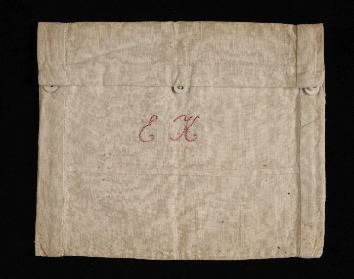 Rechthoekig zakje van crèmekleurig katoen, naaiproef...