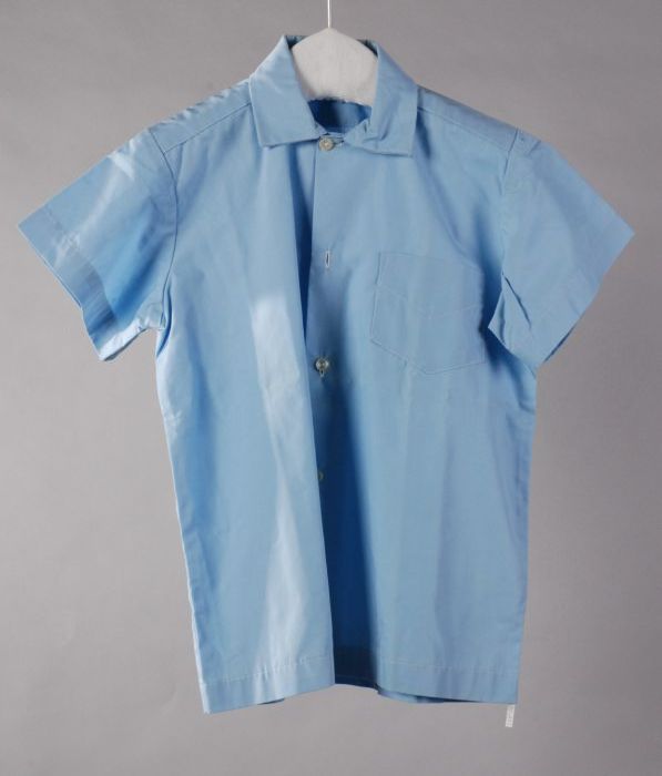 Jongensoverhemd van lichtblauw katoen met korte mouw...