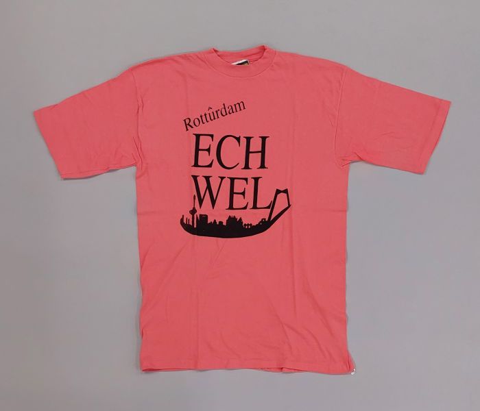 Rozerood T-shirt met gestileerde Rotterdamse skyline...