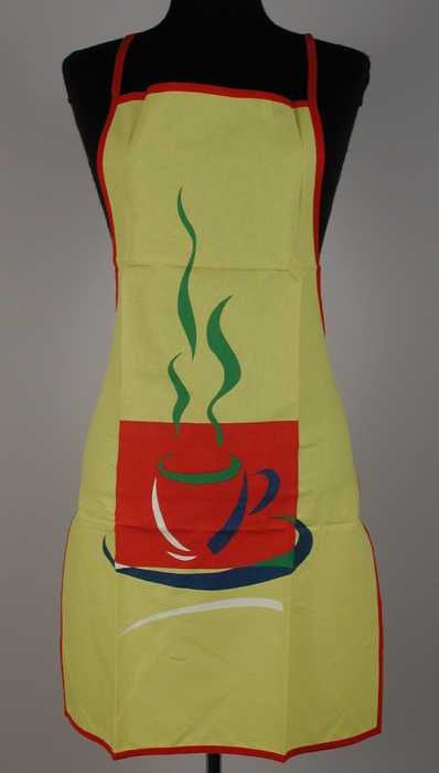 Schort van geel en rood katoen met een kleurige print