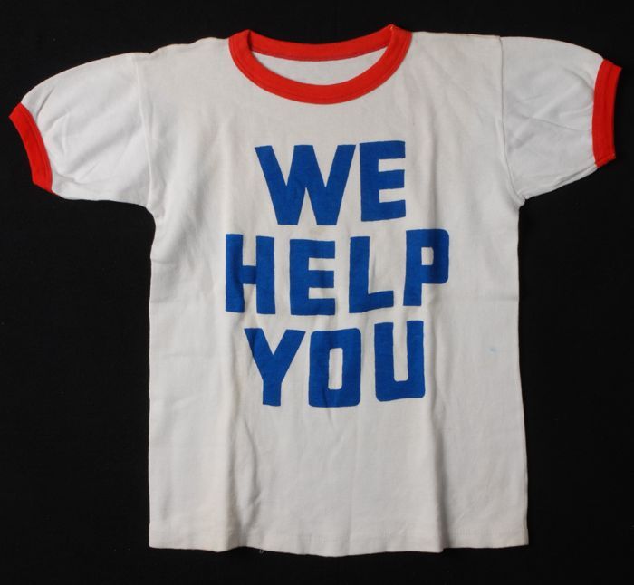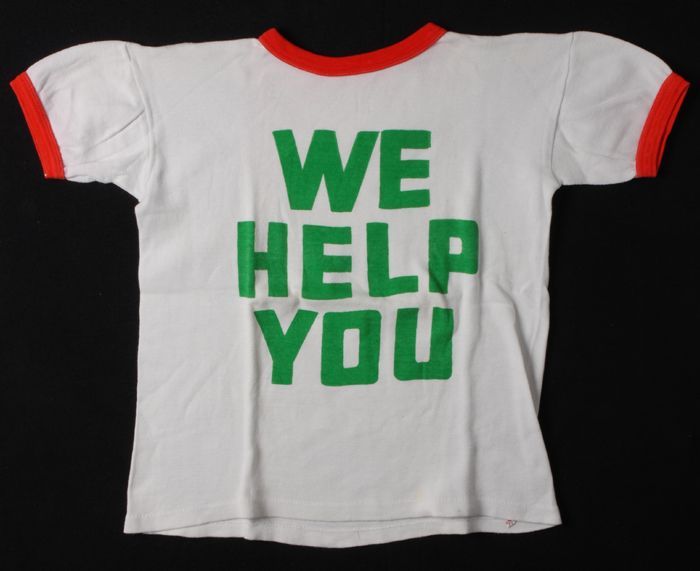 T-shirt van wit katoen met rode belettering, "WE HEL...