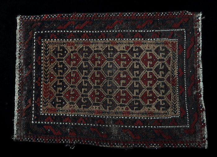 Miniatuur vloerkleed, donkerblauw met rode bies, geo...