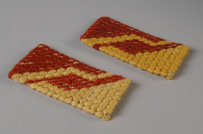 Twee identieke miniatuur vloerkleden, geel en oranje...
