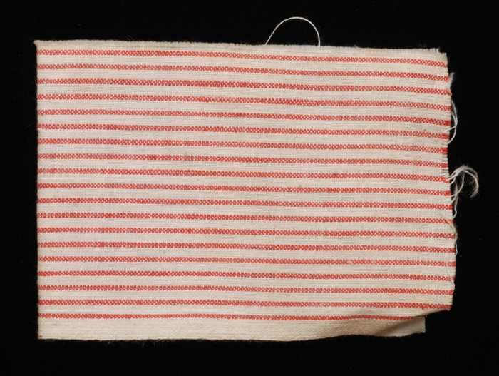 Afgewikkelde lap, wit met rode streep van toonbank v...