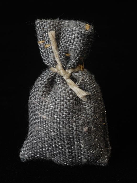 Miniatuur juten zak met vulling, dichtgeknoopt met touw