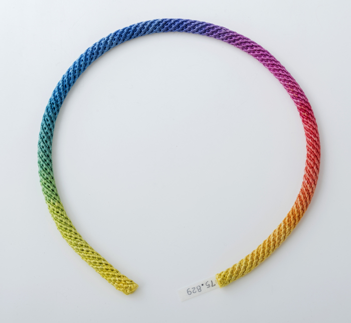 Rol hoedenband, blauw met zwarte stip, in toonbank h...