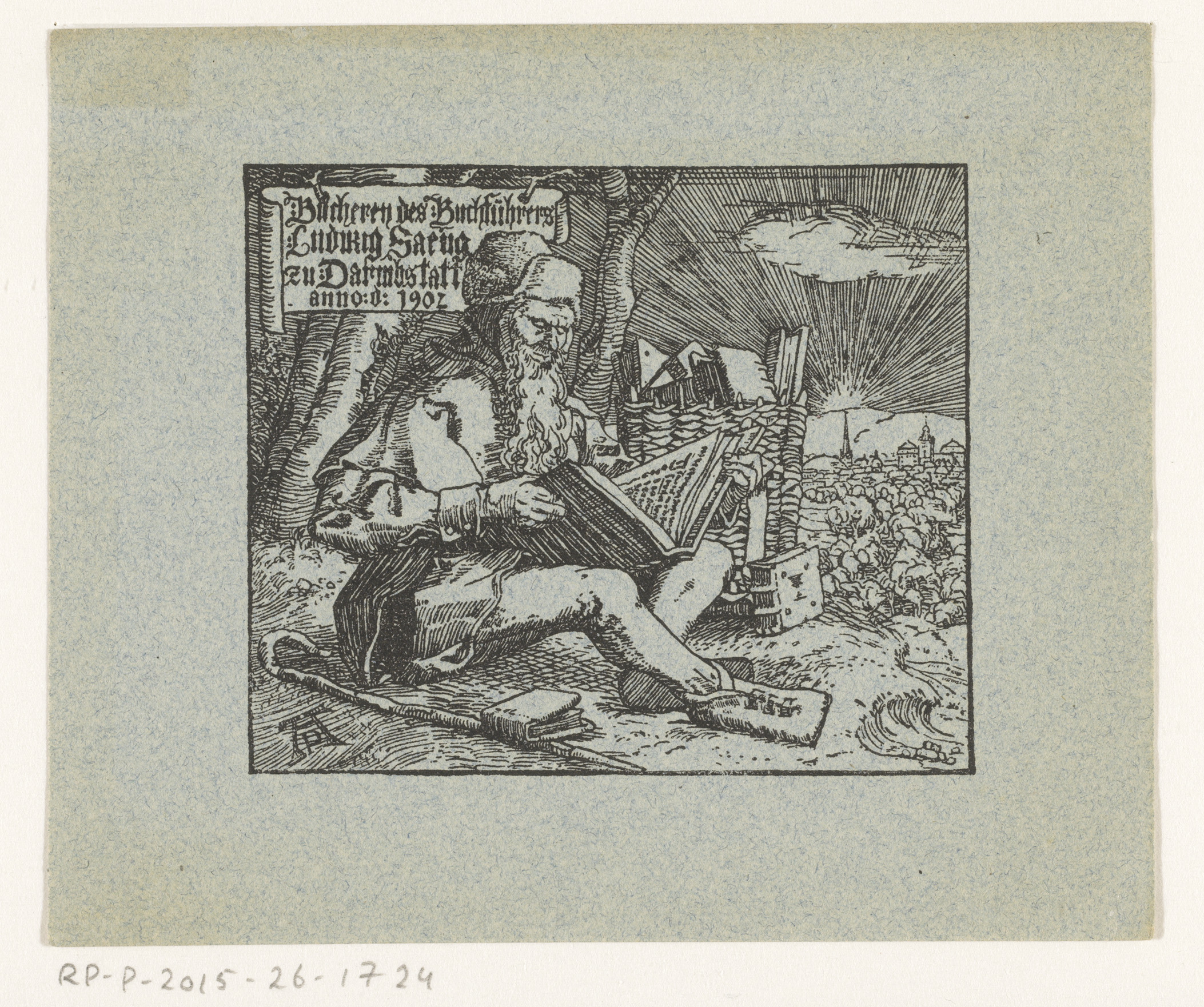 Ex libris van Ludwig Saeng, boekhandelaar te Darmstadt
