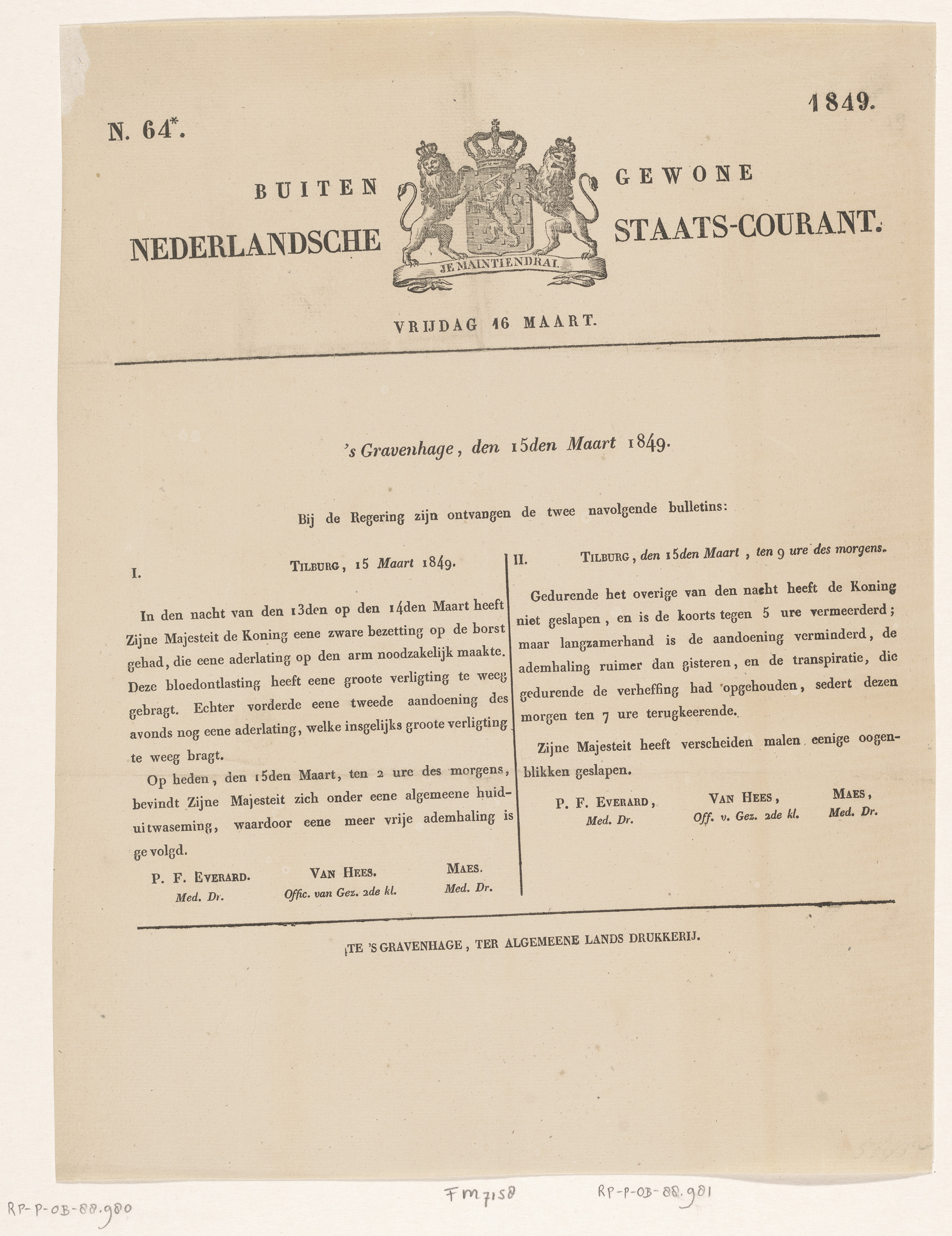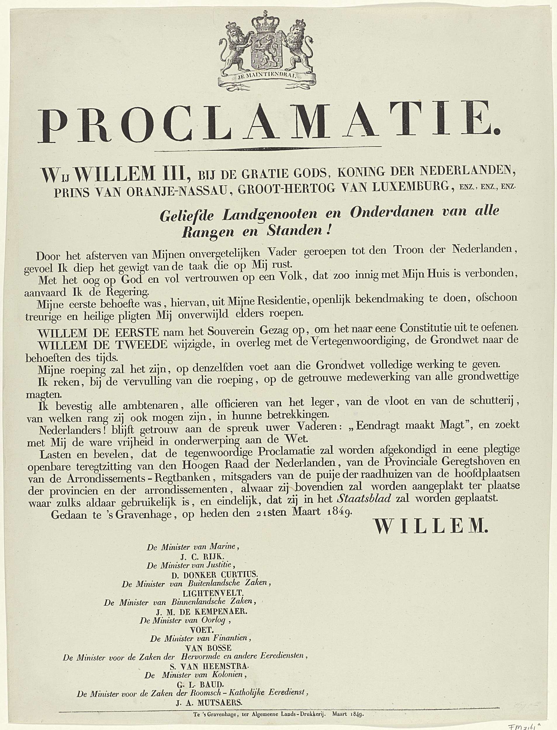 Eerste proclamatie uitgevaardigd door koning Willem ...