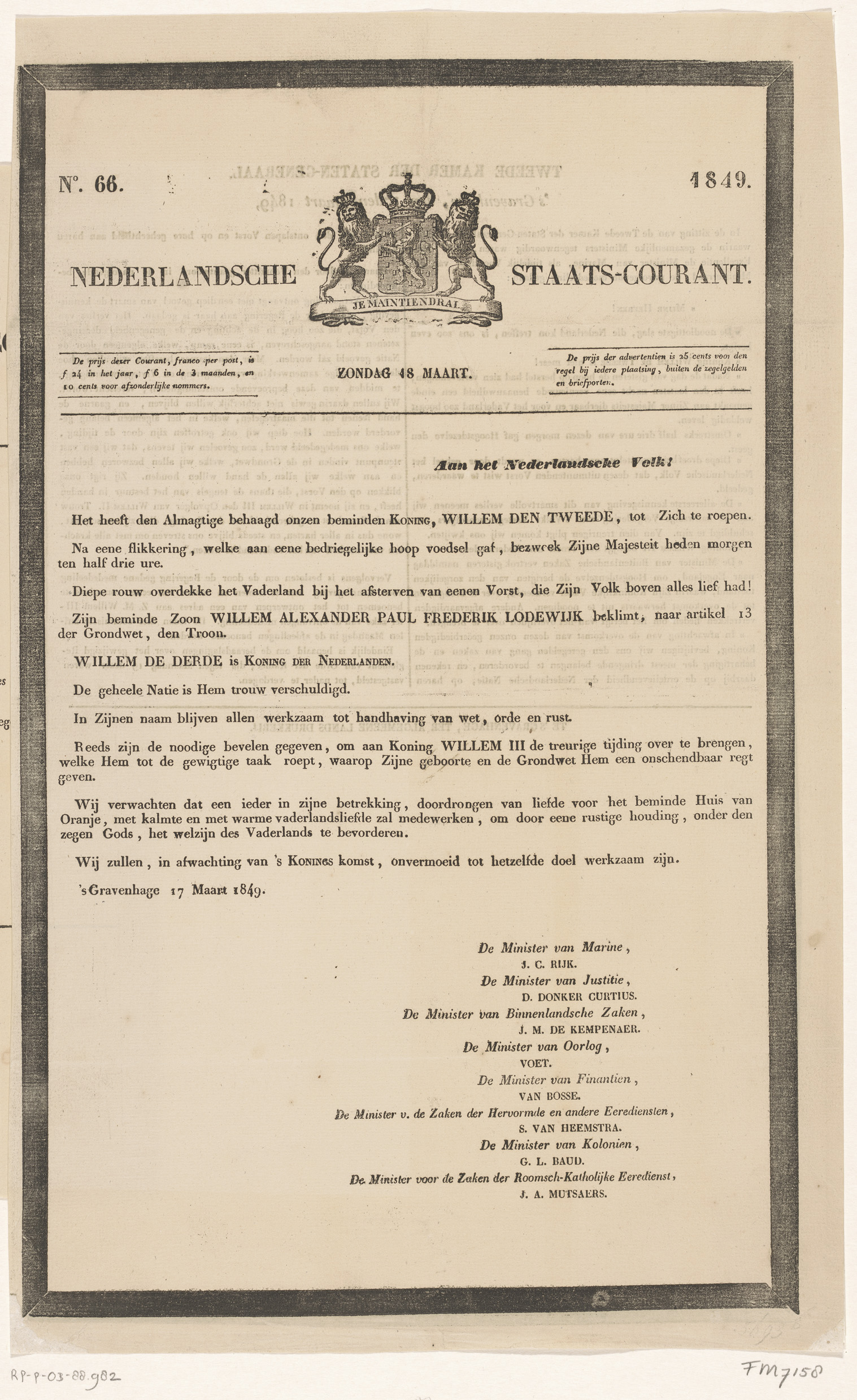 Nederlandsche Staats-Courant. Zondag 18 Maart. N. 66...