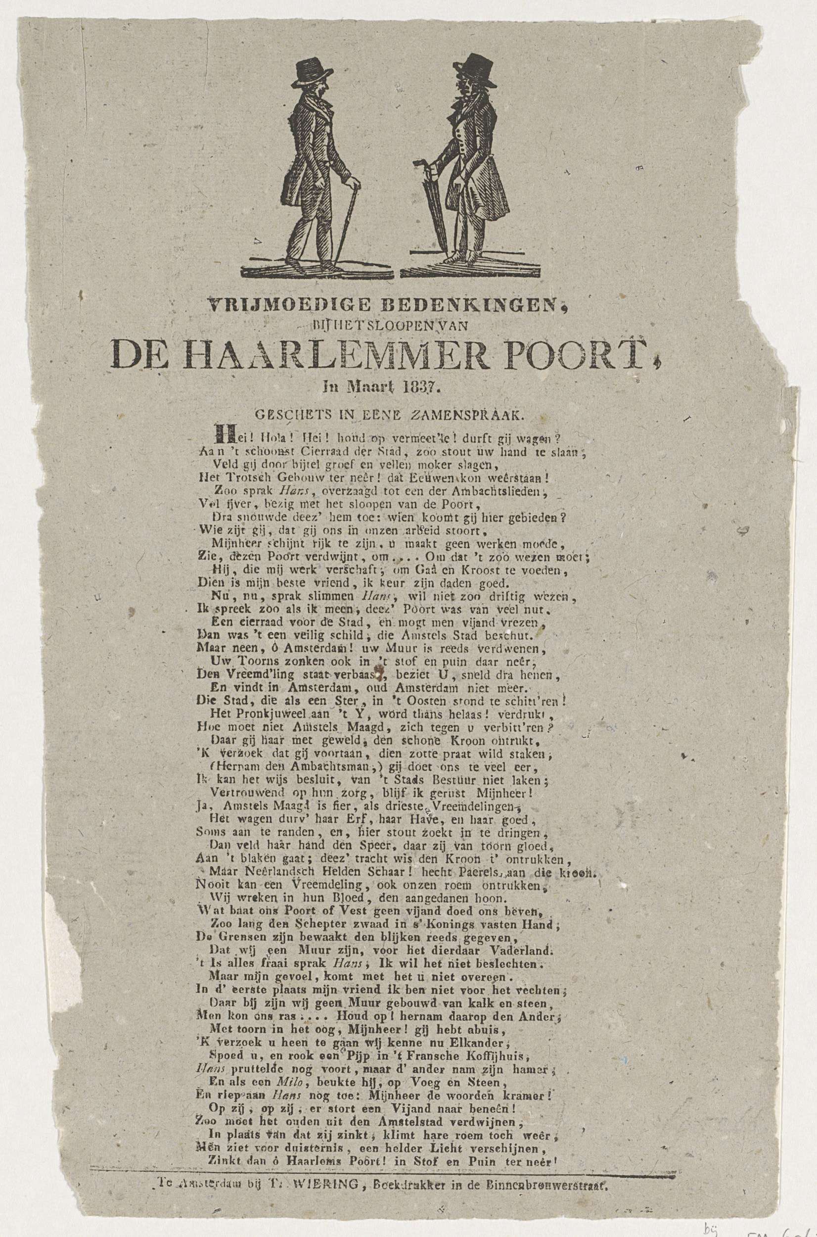 Vrijmoedige Bedenkingen, bij het sloopen van de Haar...