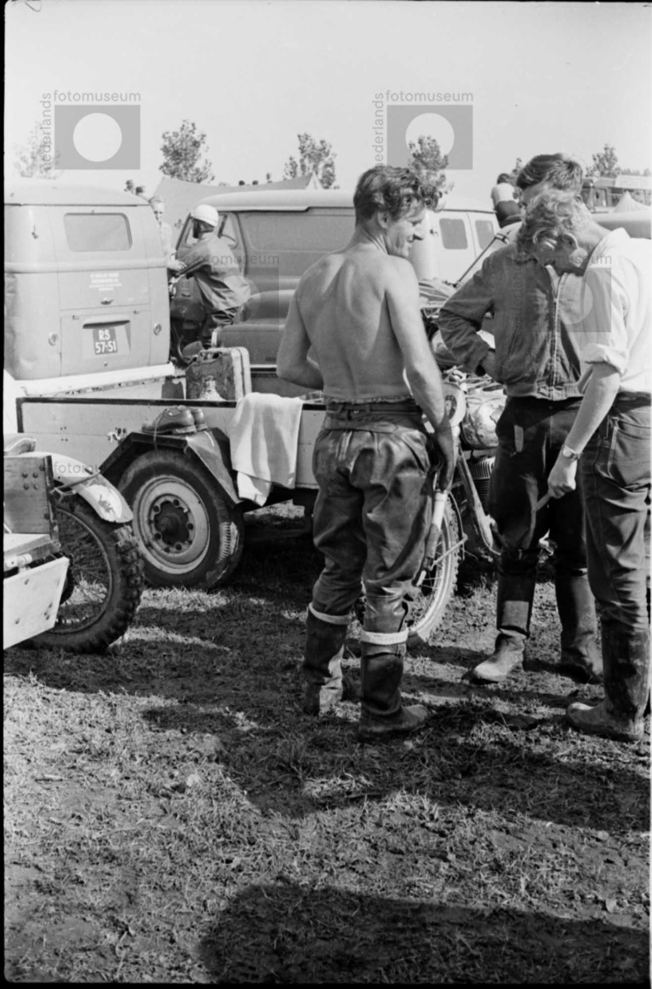ontbloot bovenlijf laarzen leren broek aanhangwagen ...