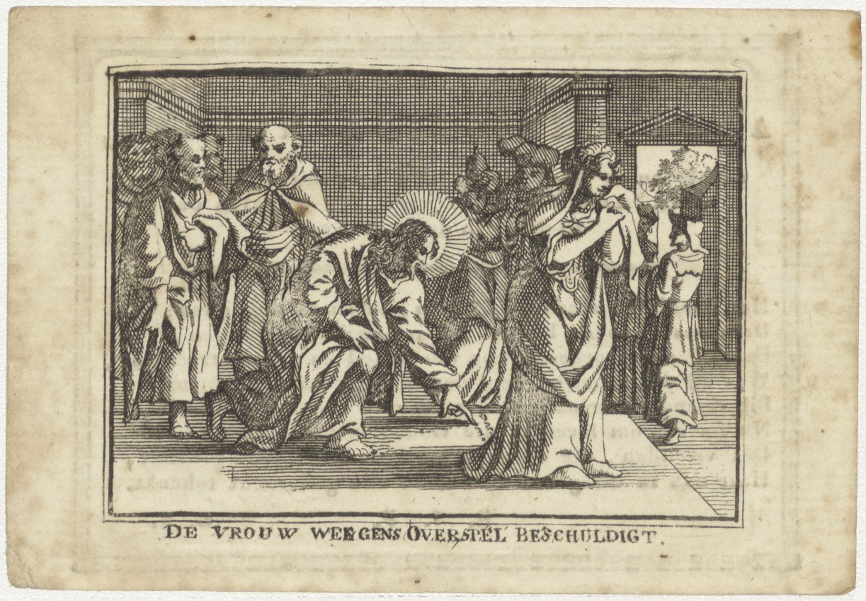 Christus met de overspelige vrouw, kz. Bid voor ziel...