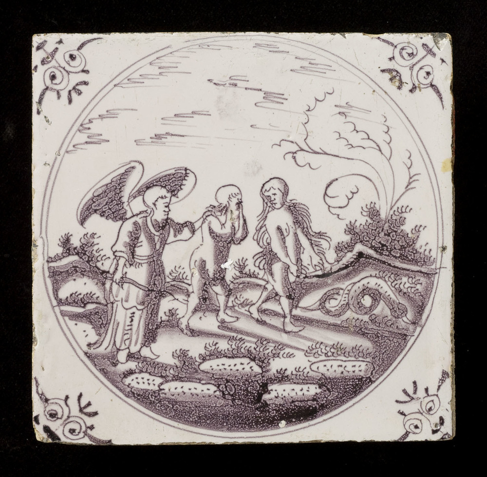 Tegel in tinglazuur, voorstellende man en vrouw, ver...