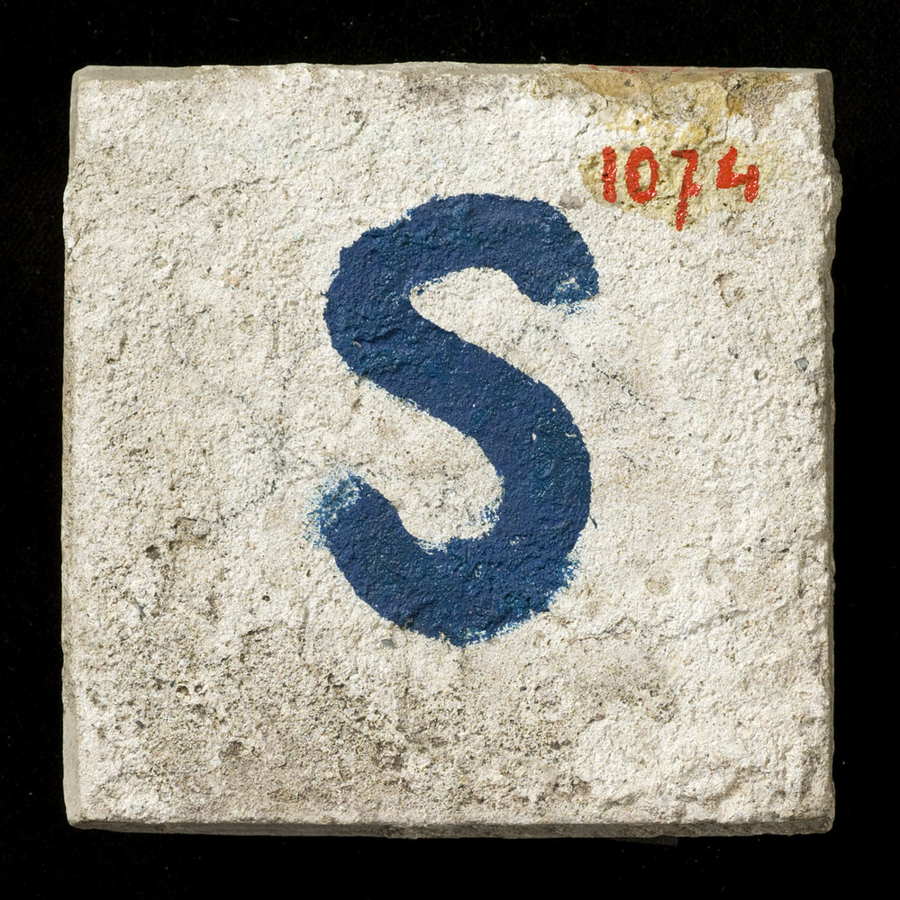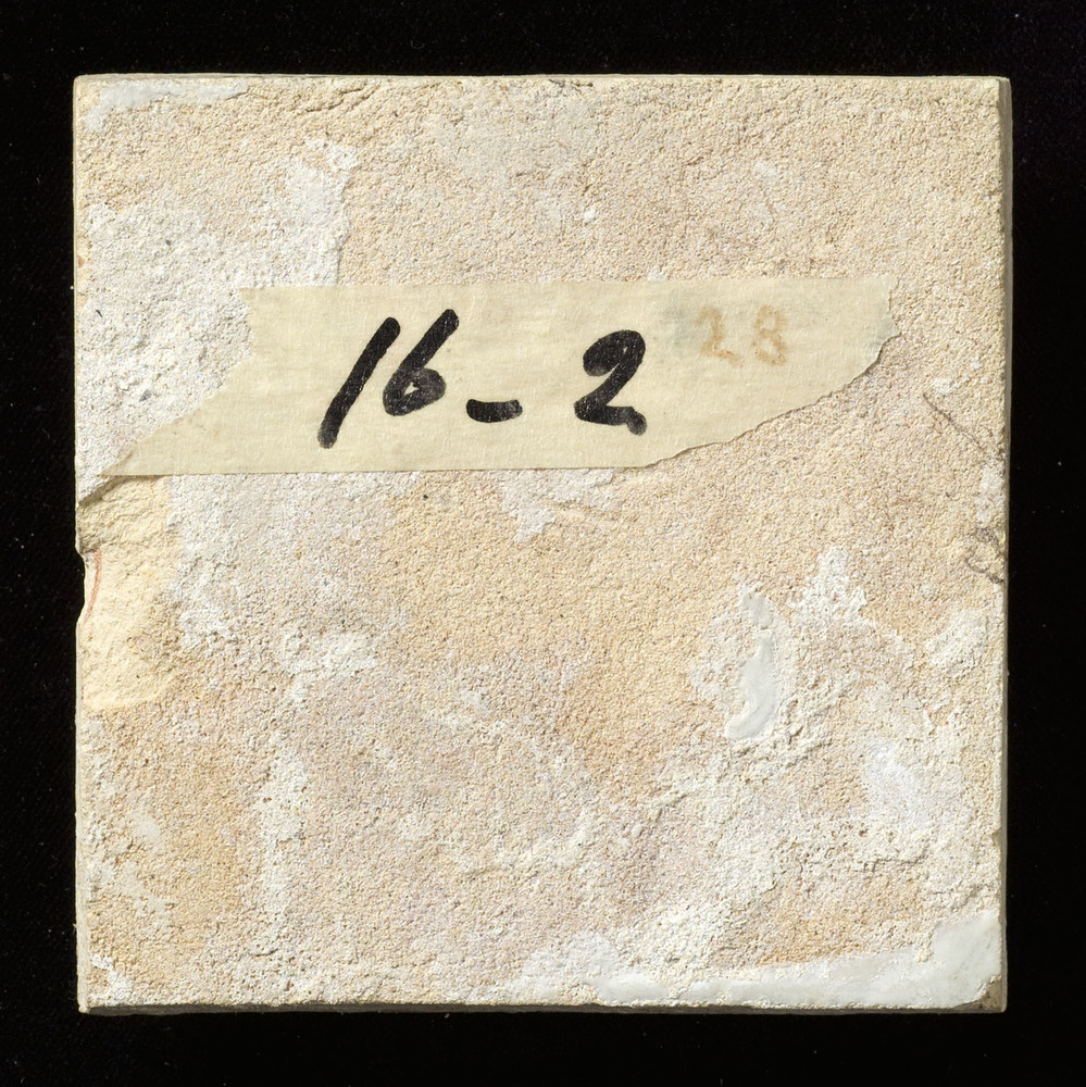 Tegelveld in tinglazuur, voorstellende een randtegel...