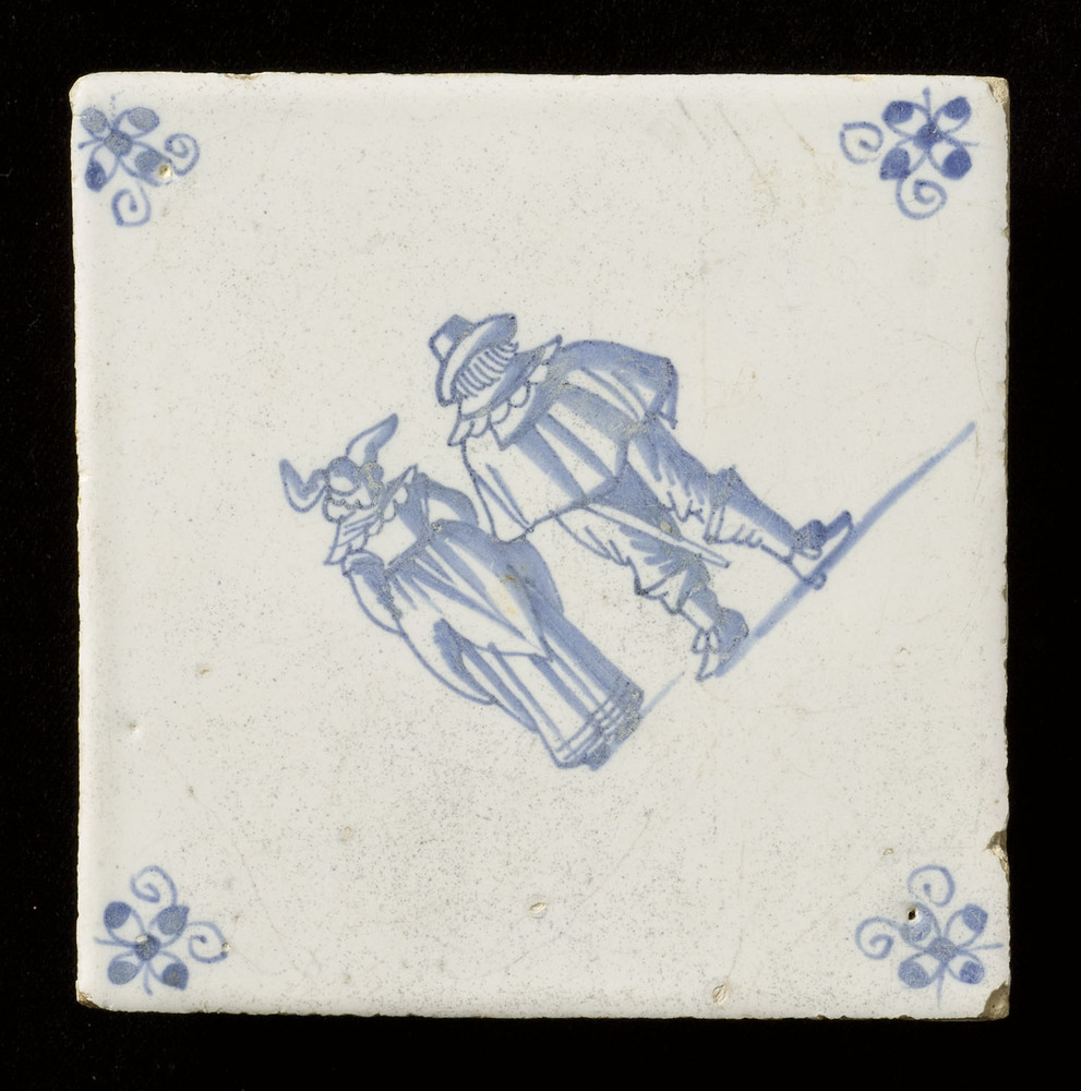 tegel met voorstelling van man en vrouw, 17e eeuw