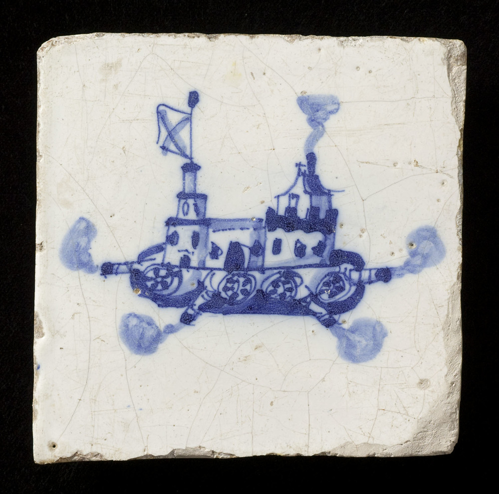 Tegel van keramiek, tinglazuur, voorstellende een vo...