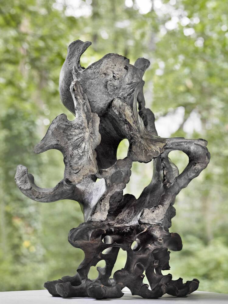 deurkruk. Gedraaide zwart houten greep, gestoken in ...