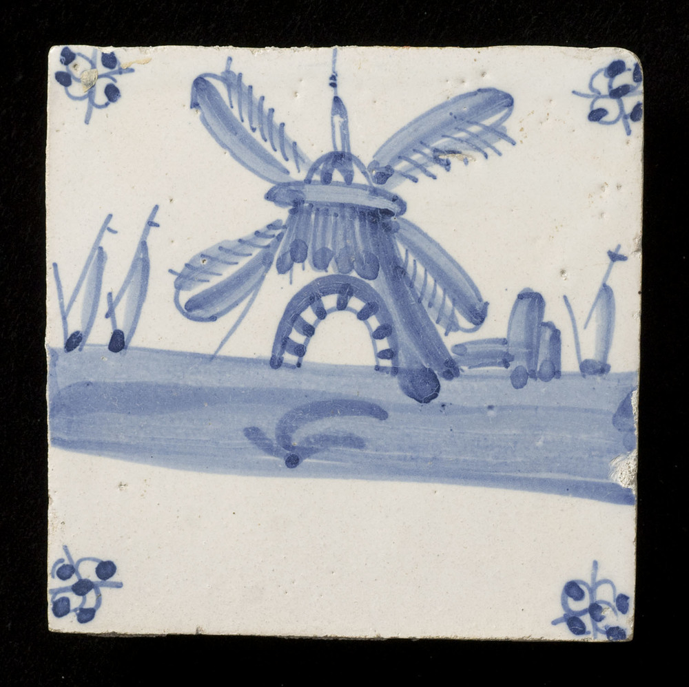 tegel van aardewerk met tinglazuur, voorstellende: h...