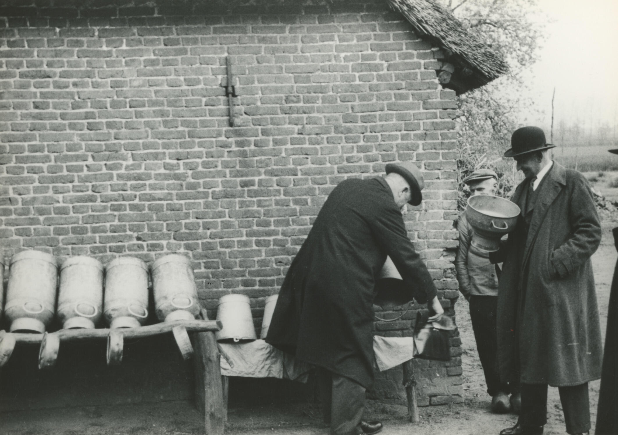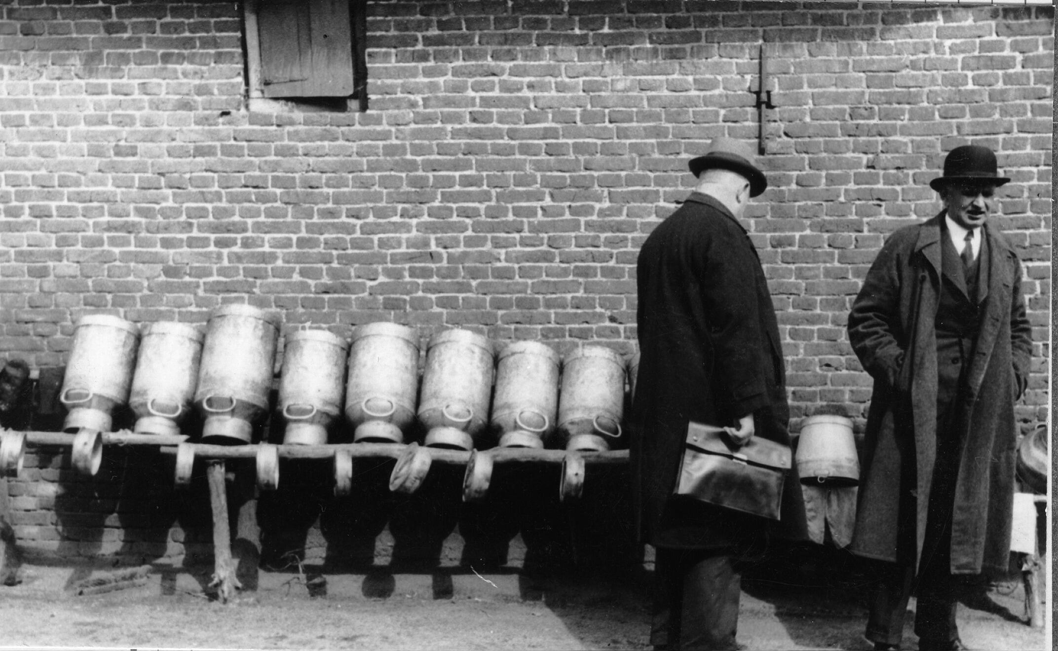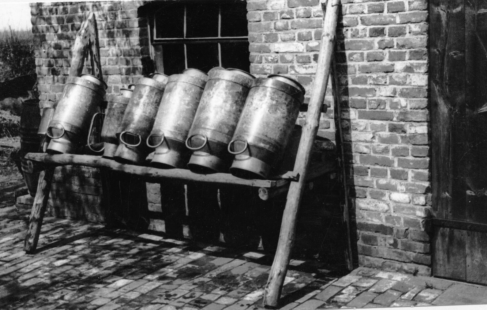 Melkbussenrek, Asten, 1936 (zwart-wit foto)