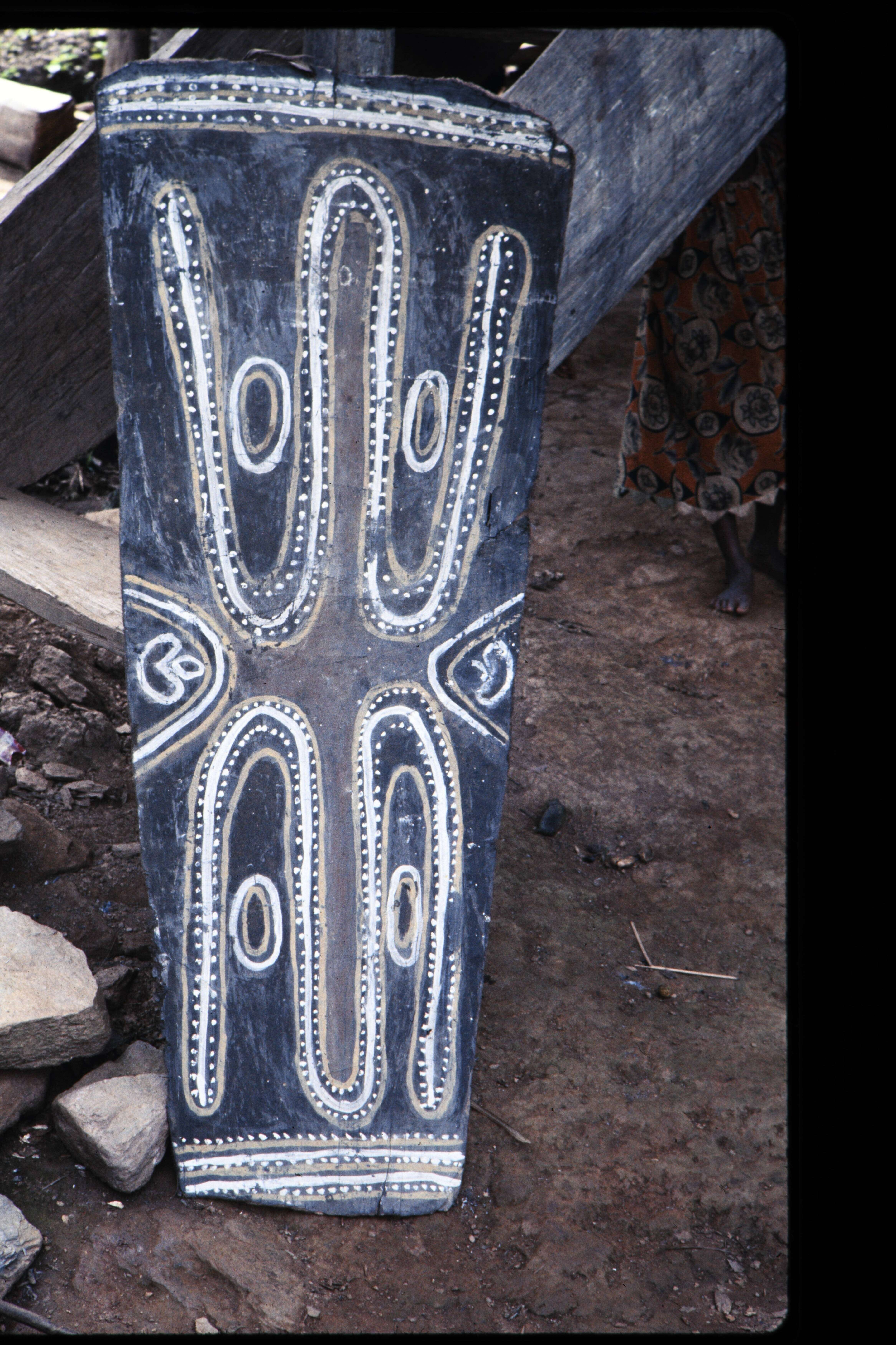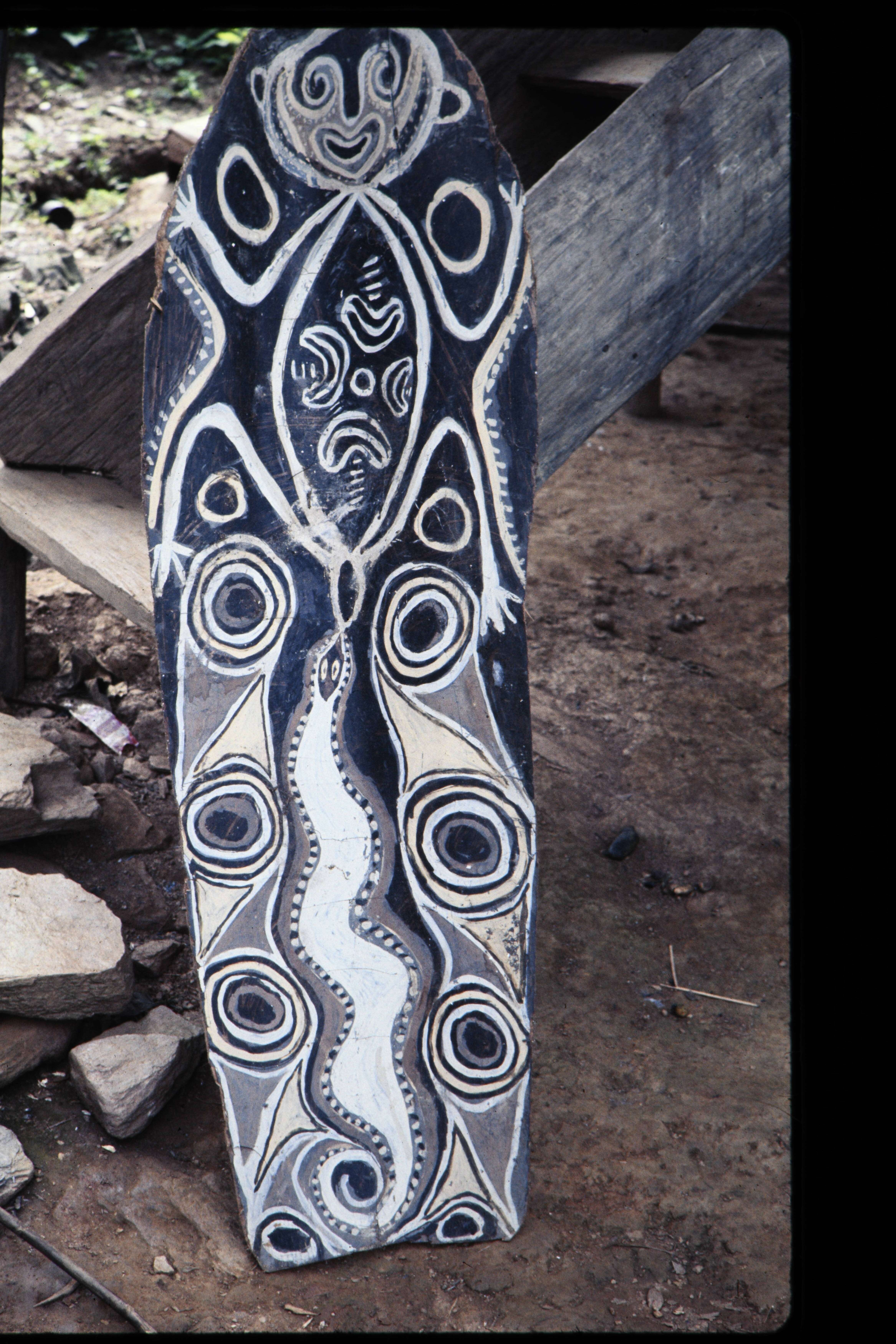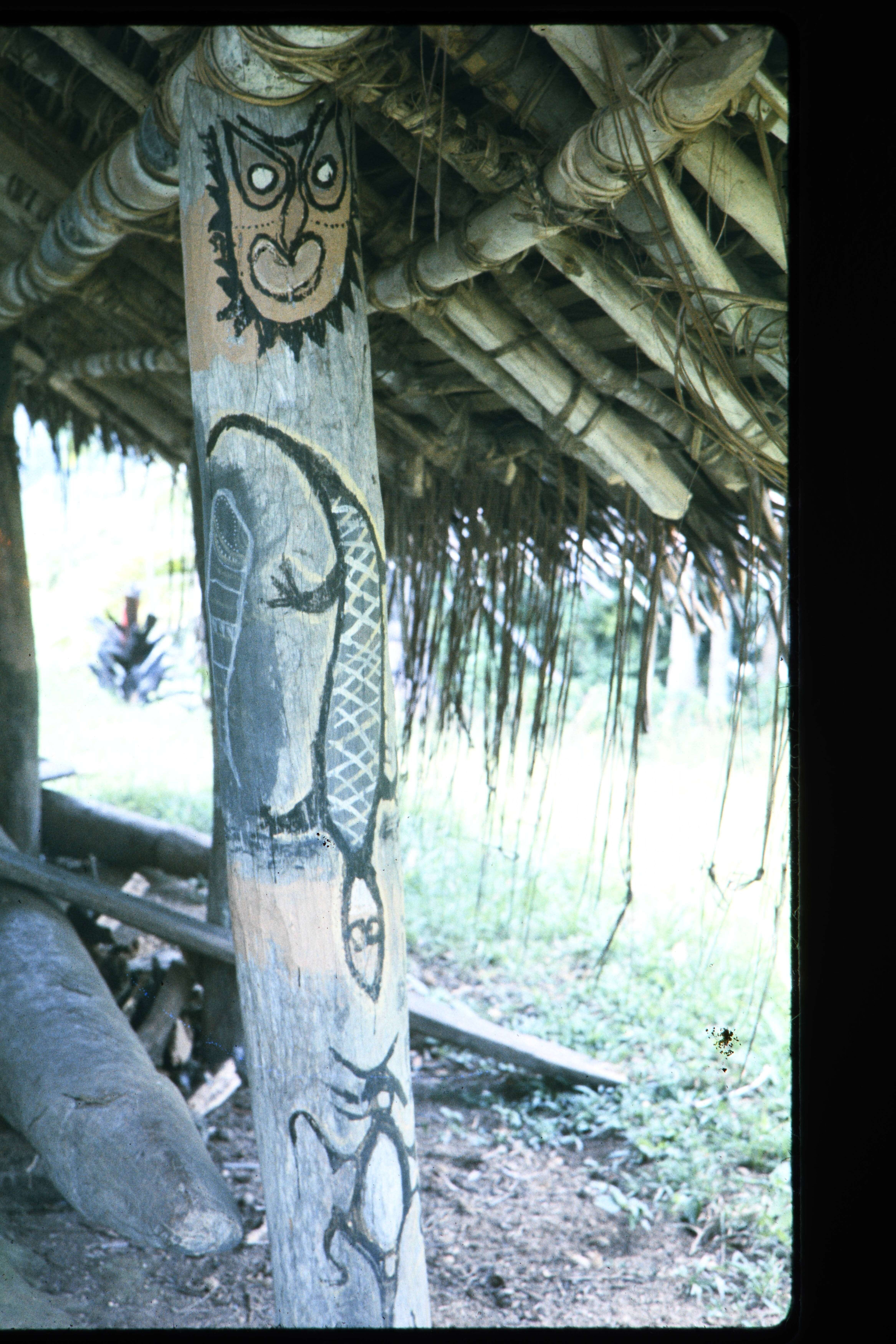 Sacrale houtsculptuur in dorp Minau, Waskkuk. Manggr...