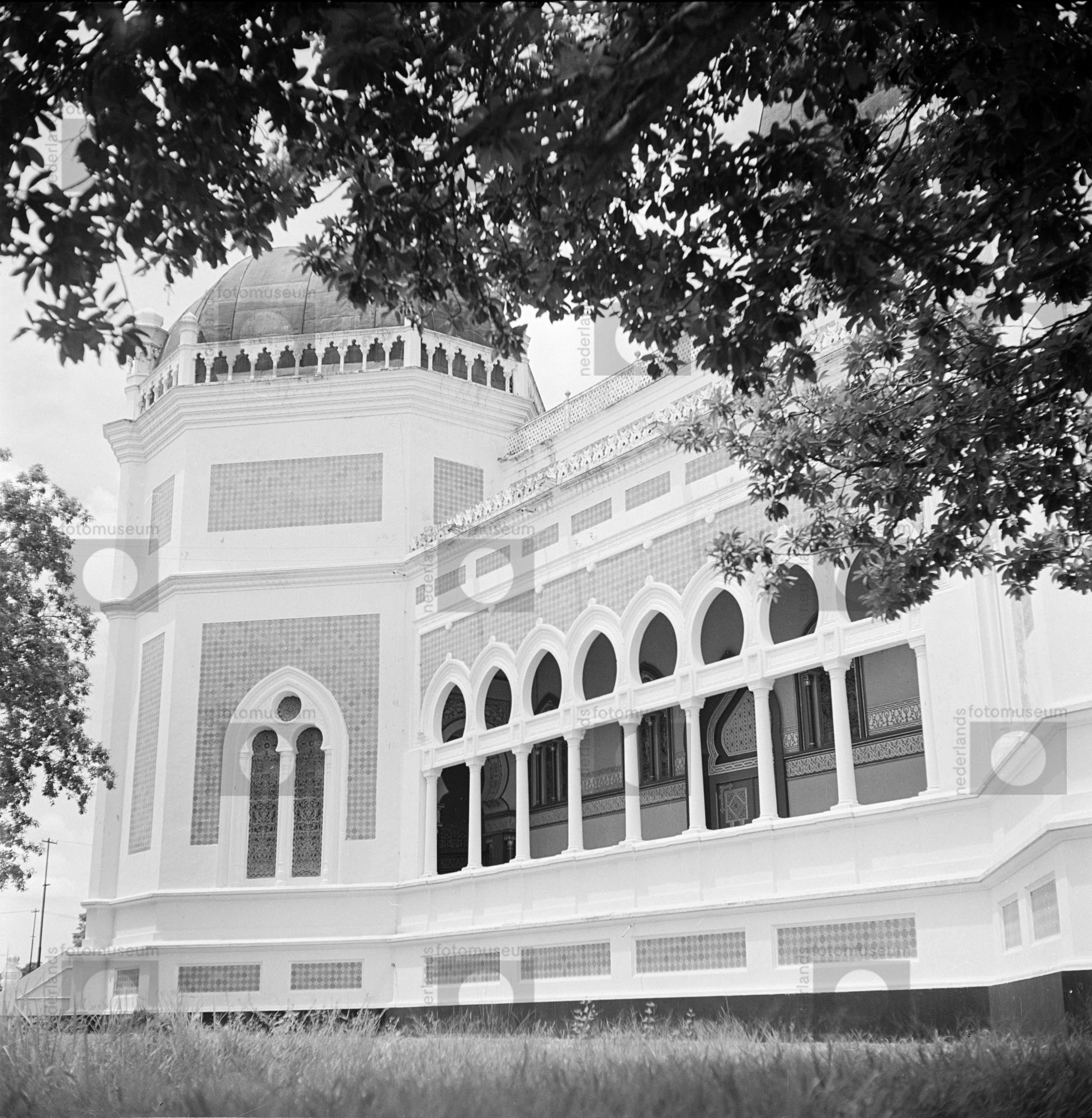 Overhoeks aanzicht van de Masjid Raya, oftewel Grote...