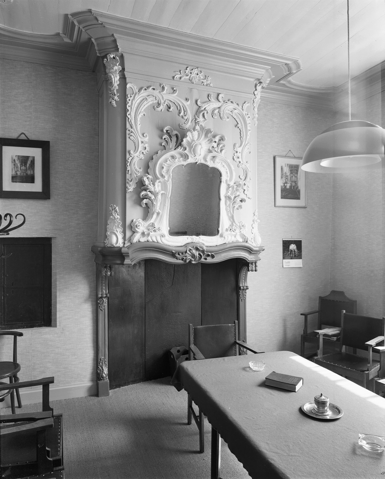 Interieur, schouw in voormalige sacristie