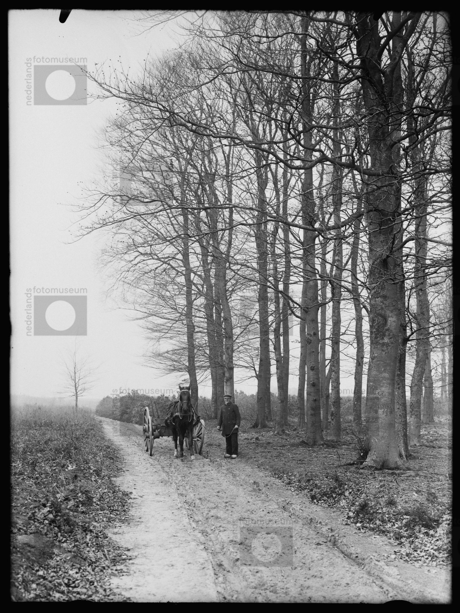 Wagen met paard, op weg om hout te halen in Ugchelse...