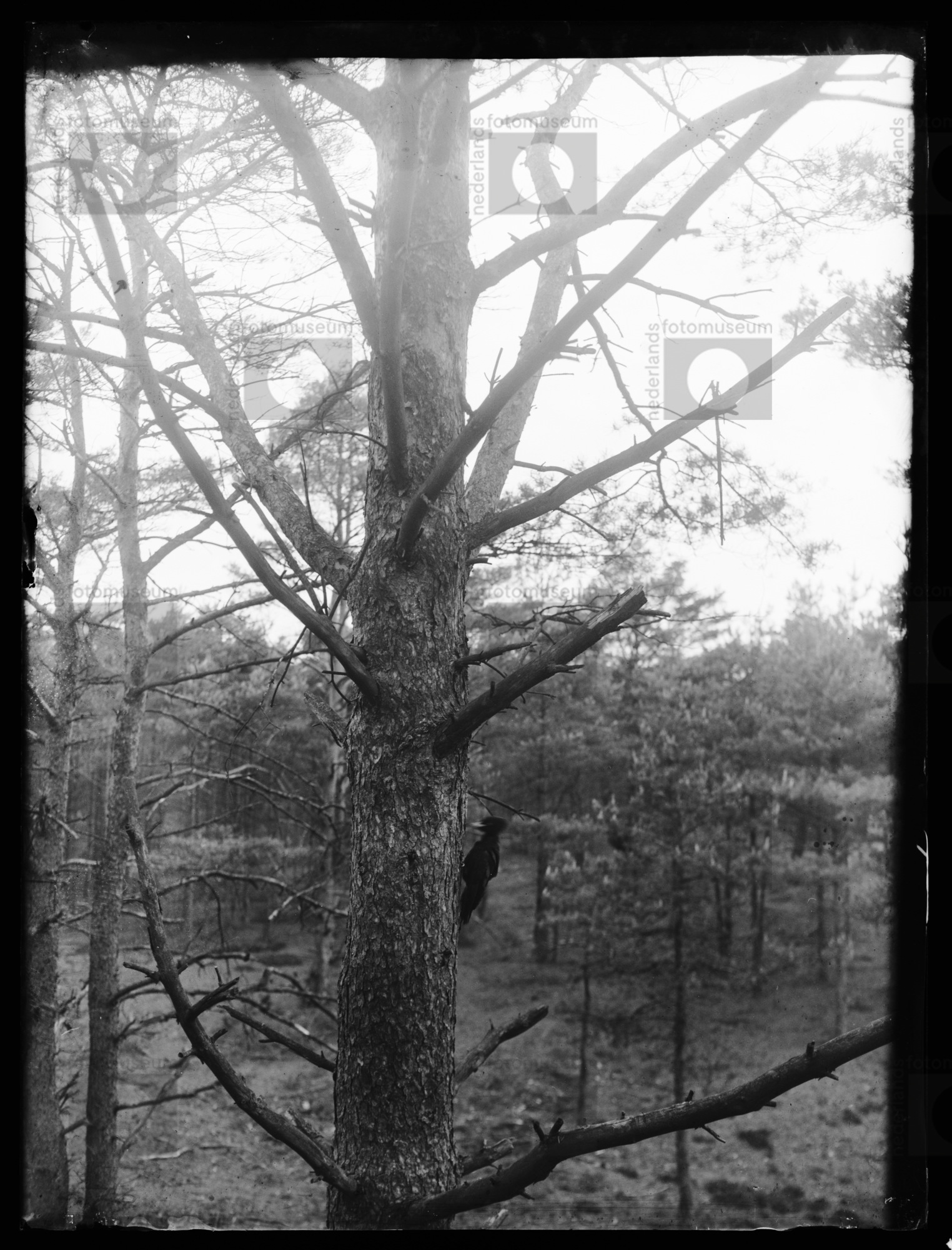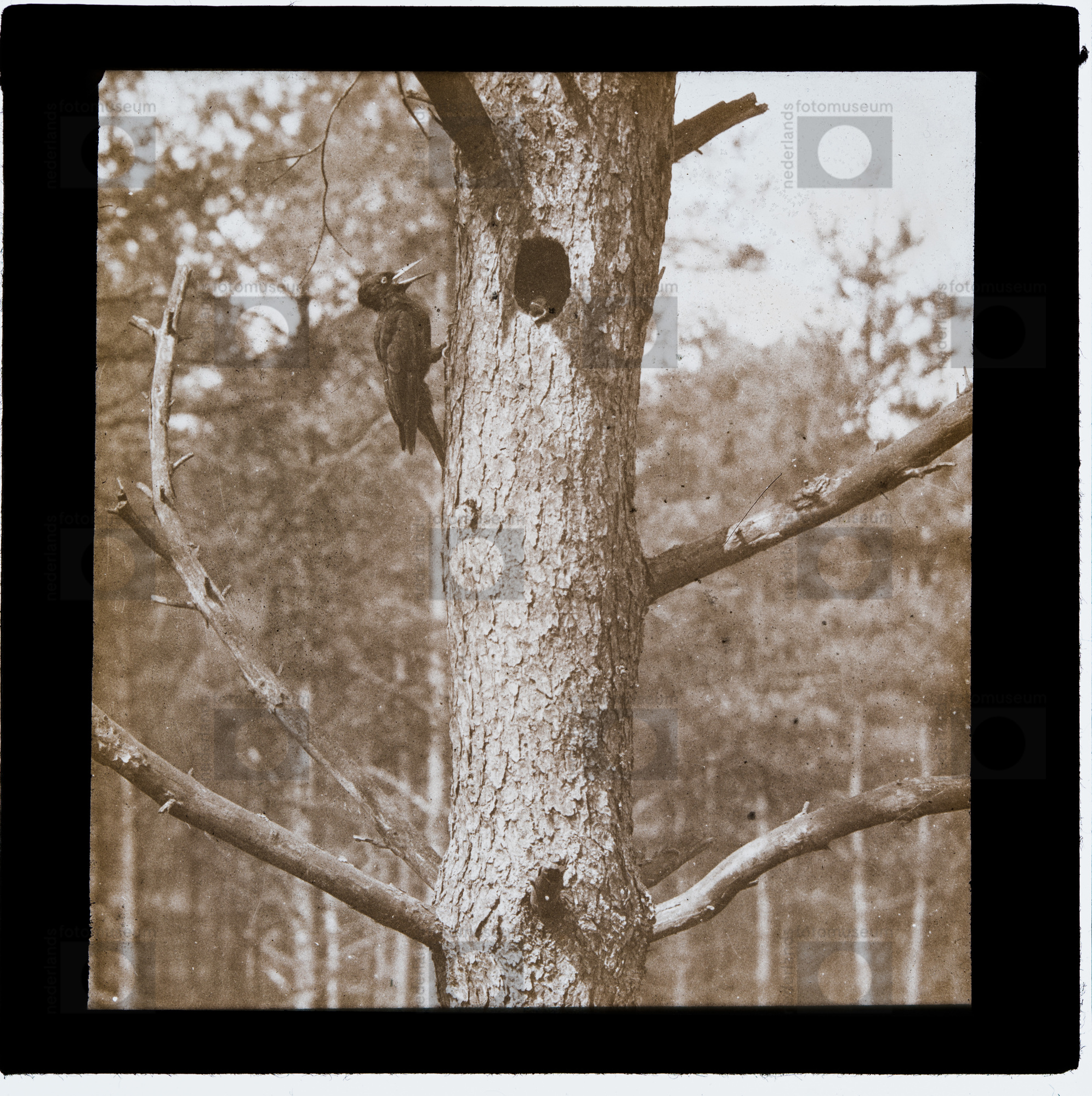Zwarte specht bij nest met jong, Planken Wambuis (1930)