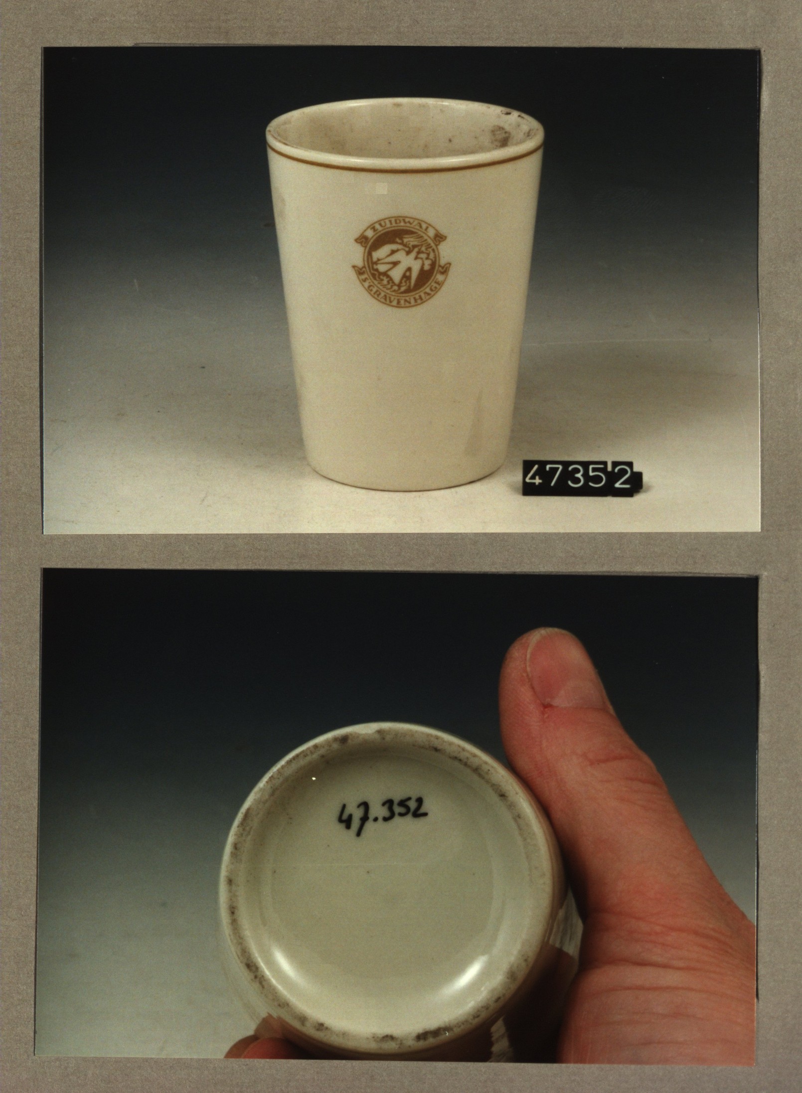 Beker met opschrift, model Z met decor Zuidwal s'Gra...