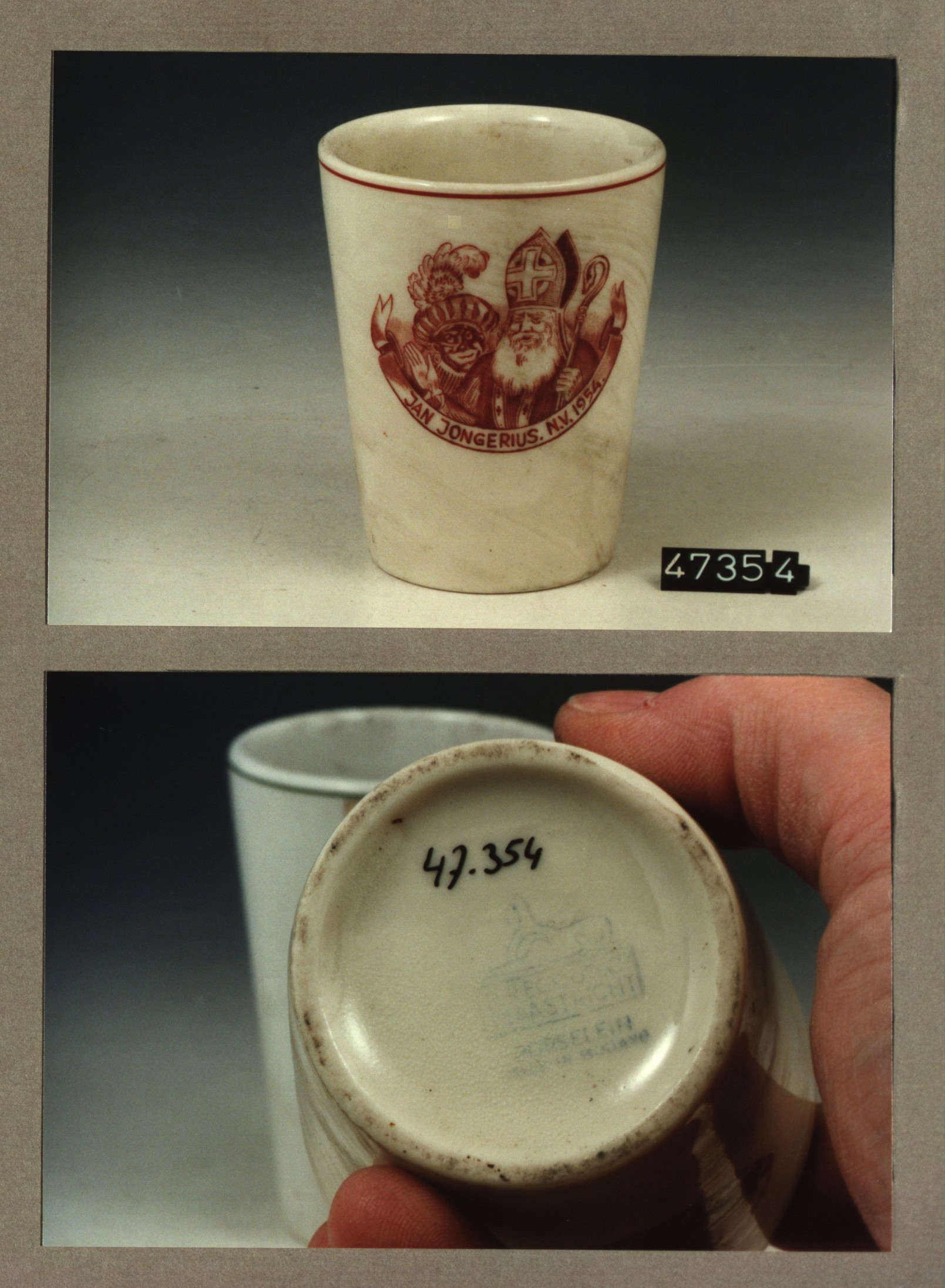Beker met opschrift, model Z met decor Jan Jongerius...