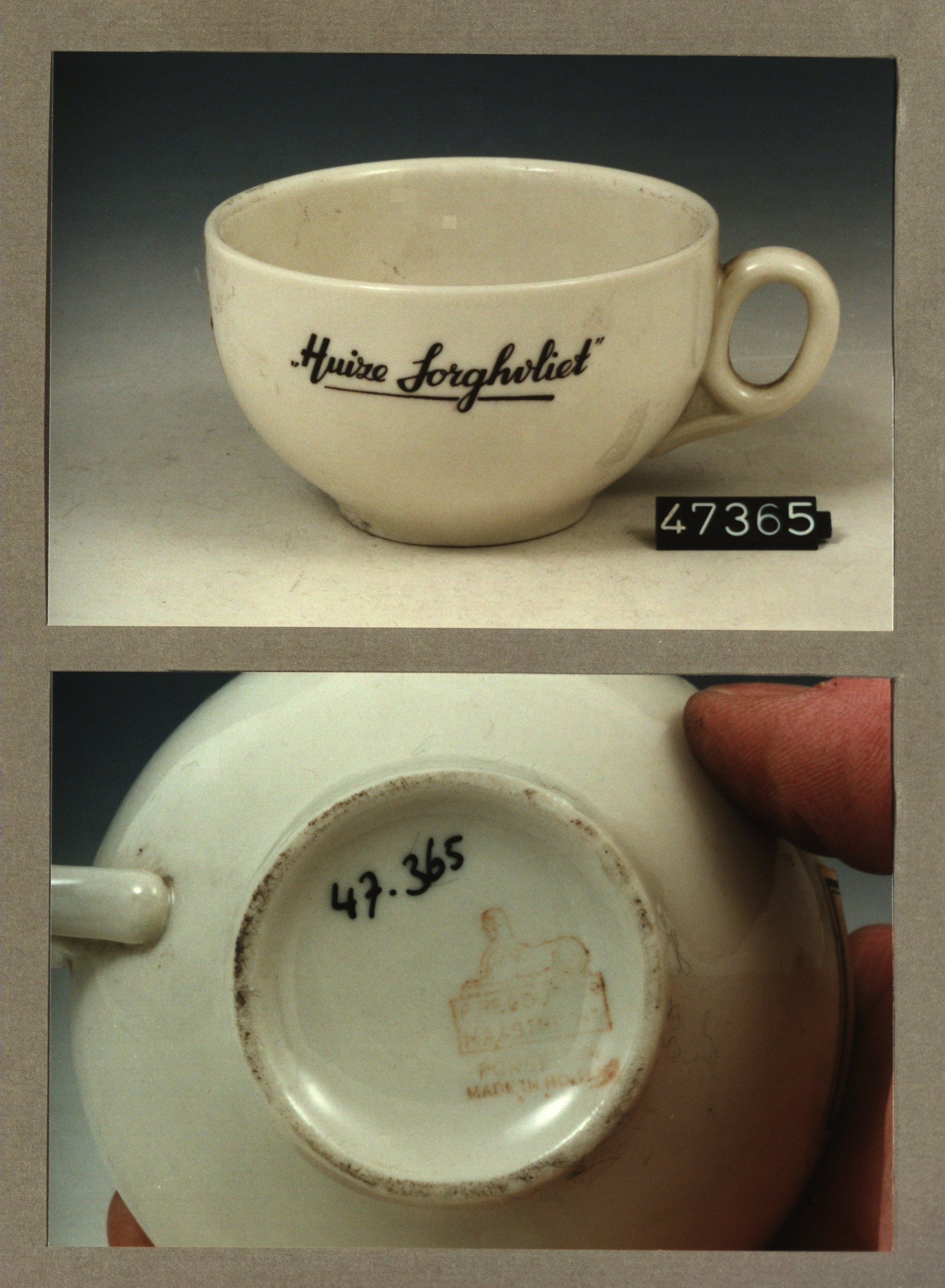 Kop met opschrift, model F met decor Huize Sorghvliet