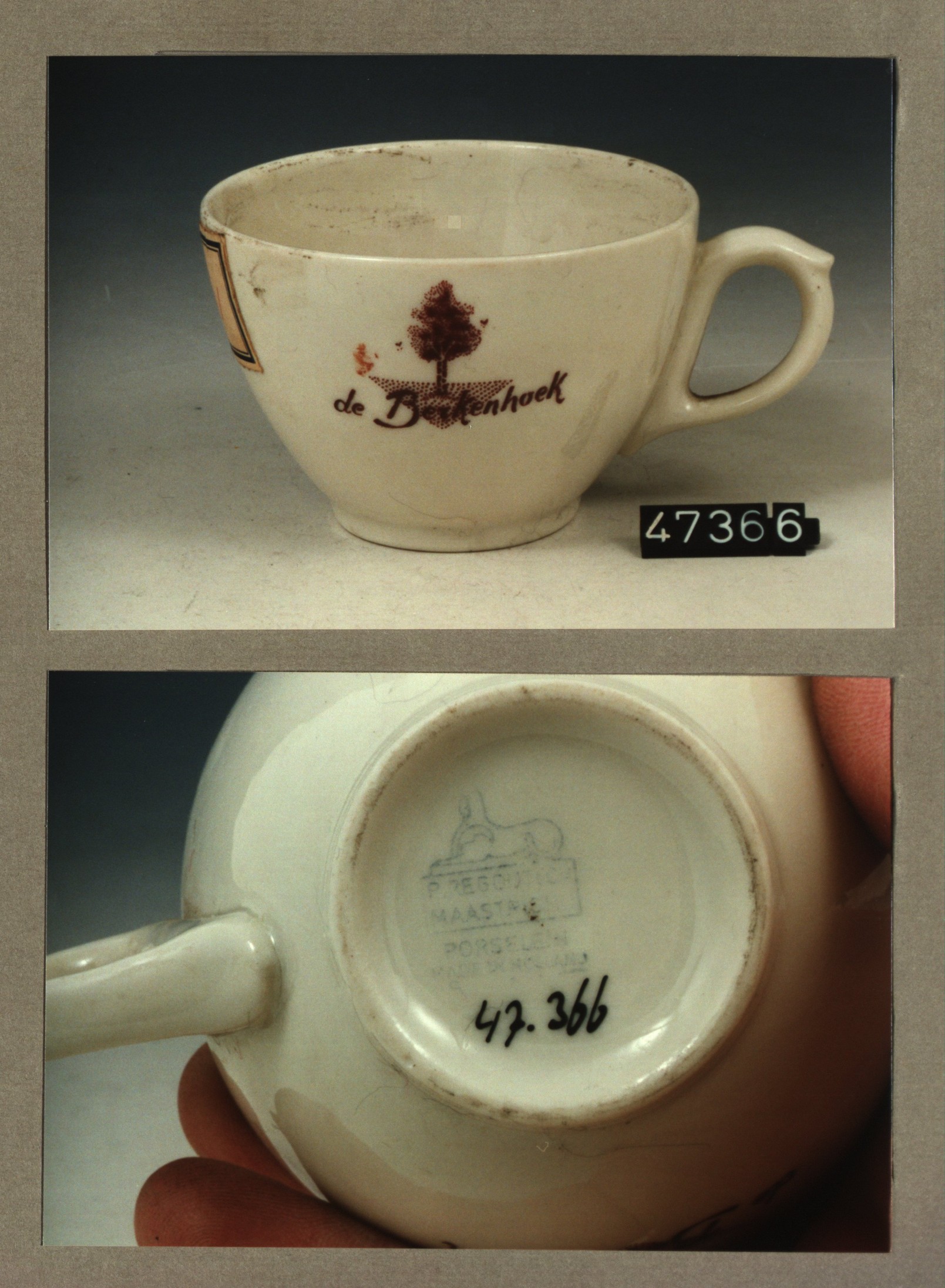 Kop met opschrift, model SMN met decor De berkenhoek