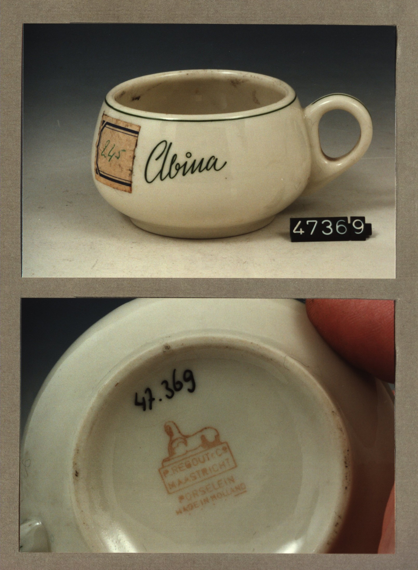 Kop met opschrift, model CH met decor Abina