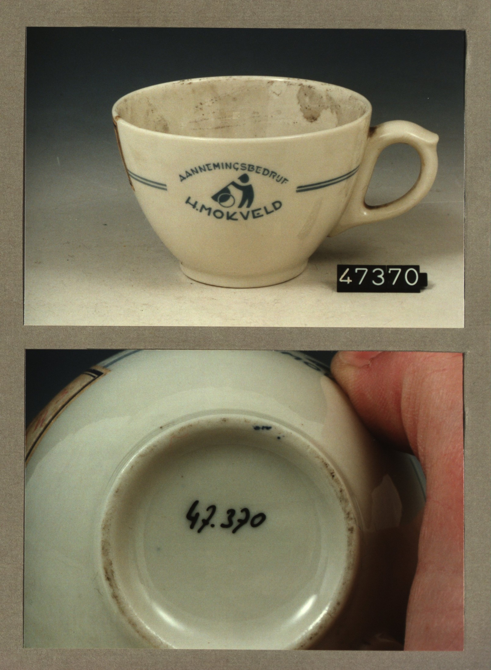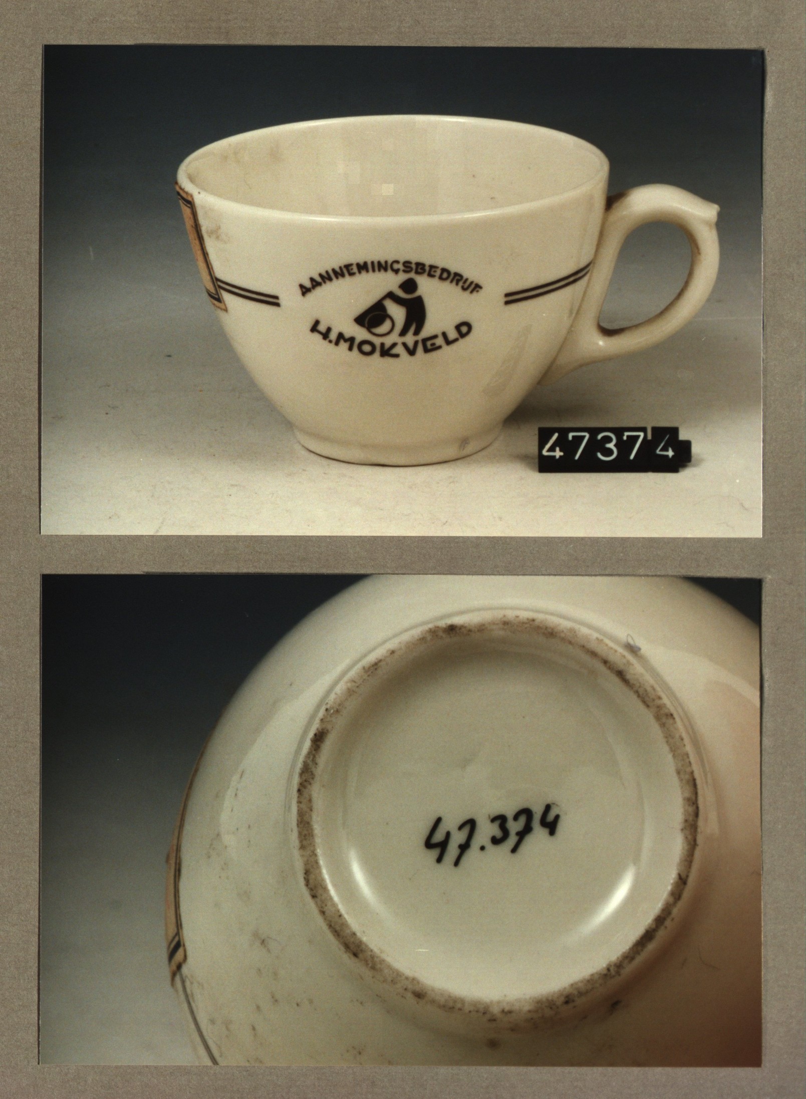 Kop met opschrift, model SMN met decor Aannemingsbed...