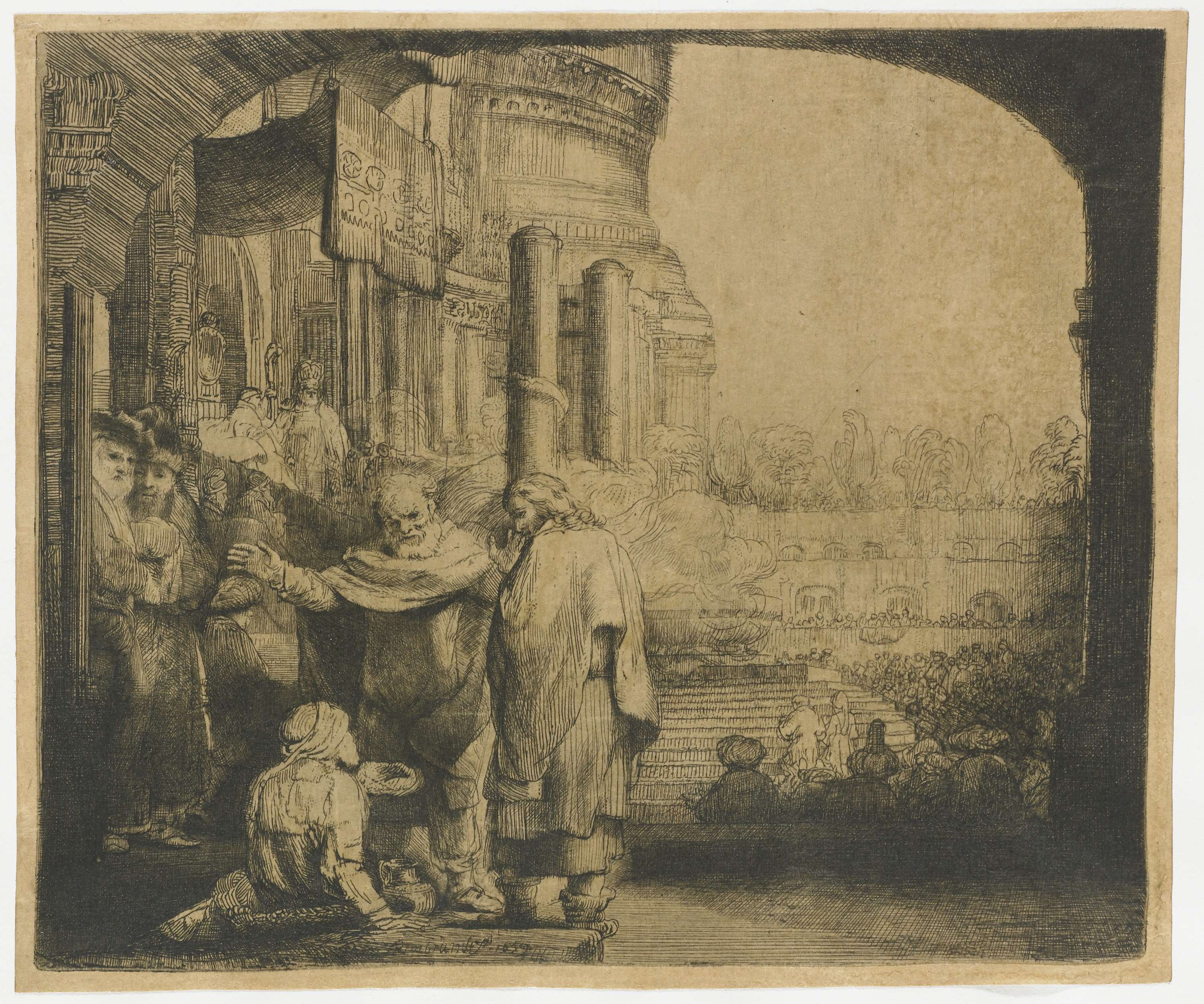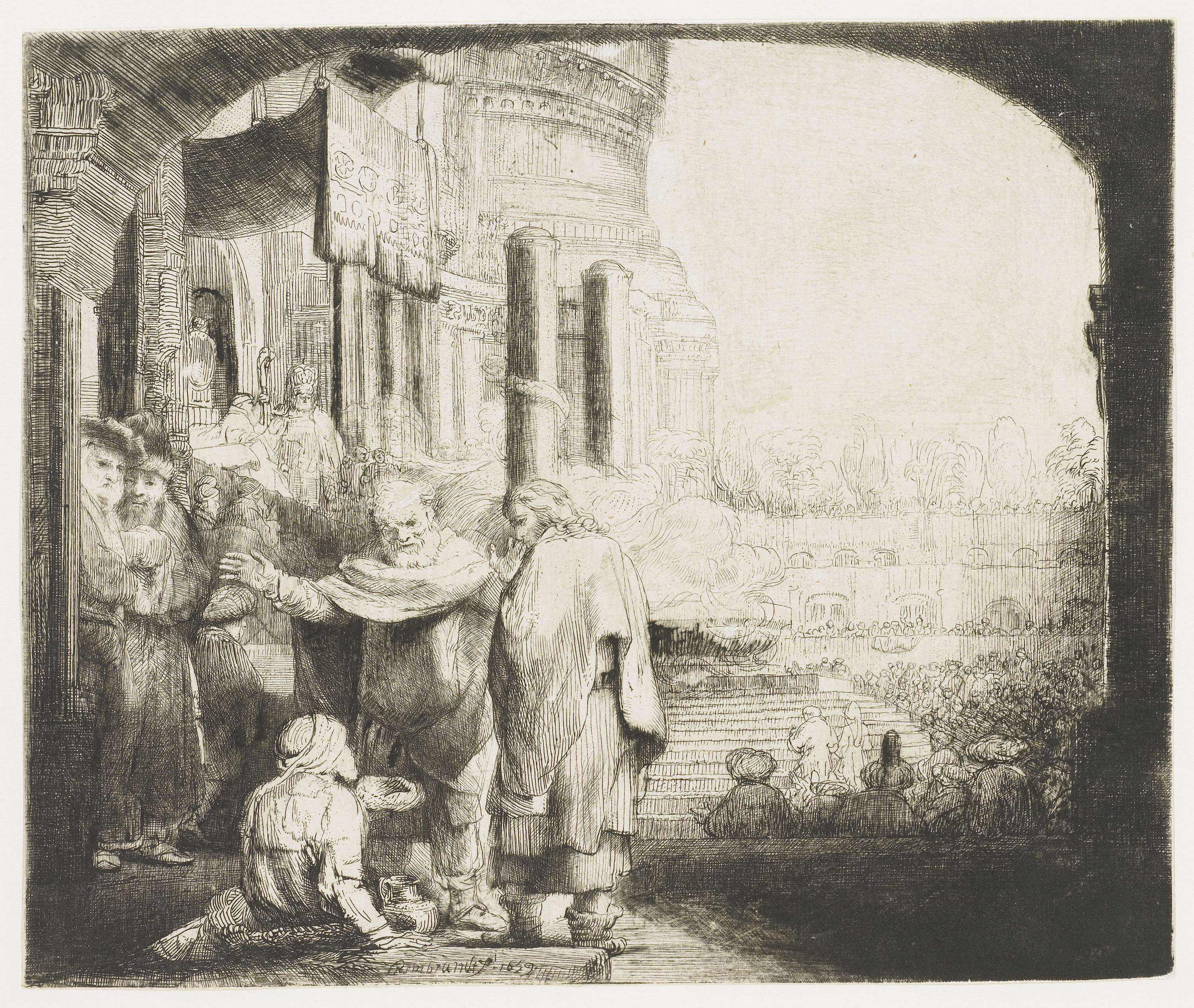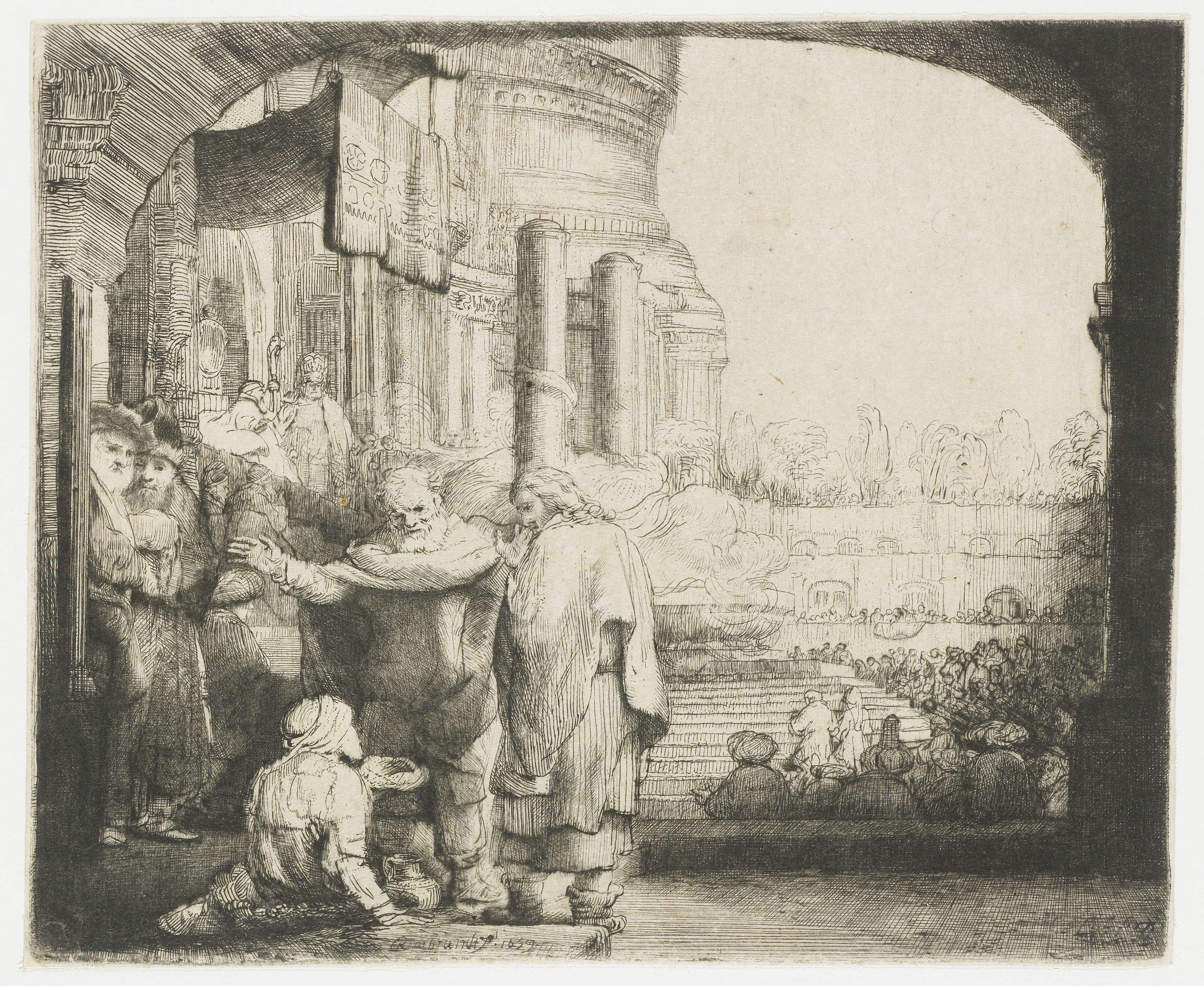 Petrus en Johannes genezen een verlamde man bij de t...