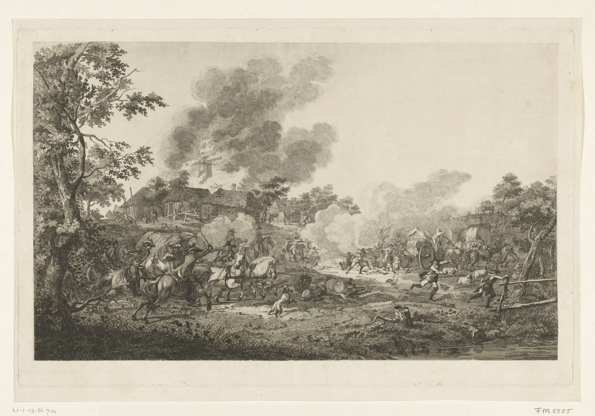Ruitercharge bij een brandende molen
