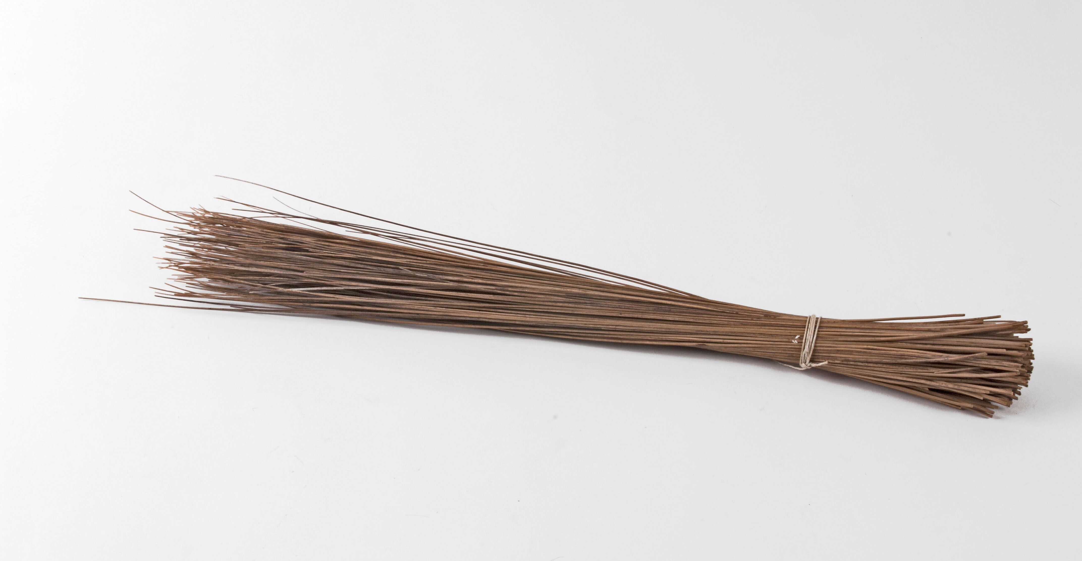 Bezem van lange bladnerven, samengebonden met gevloc...