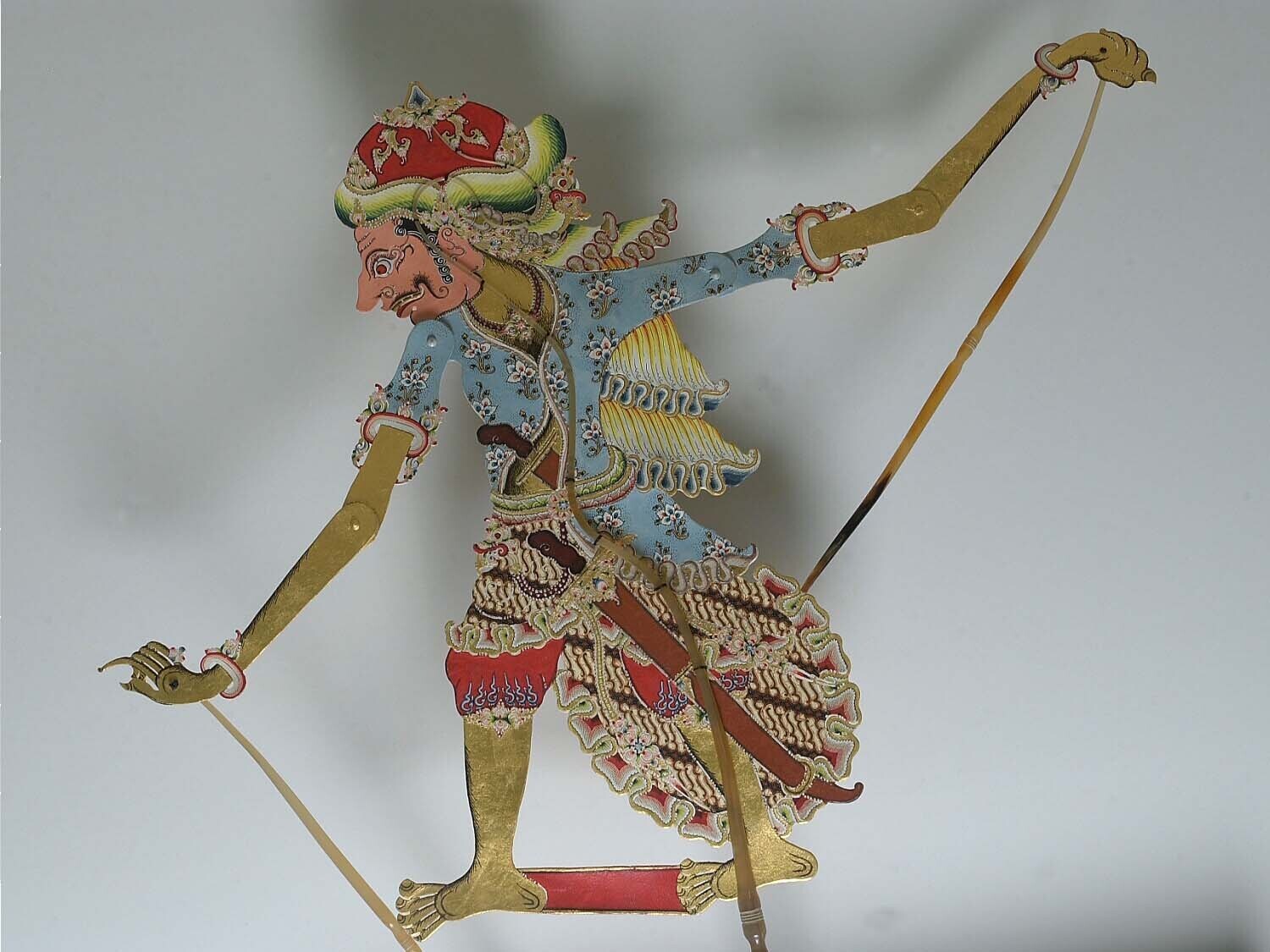 Ronde houten wayangpop (golek) een edel mannelijk pe...