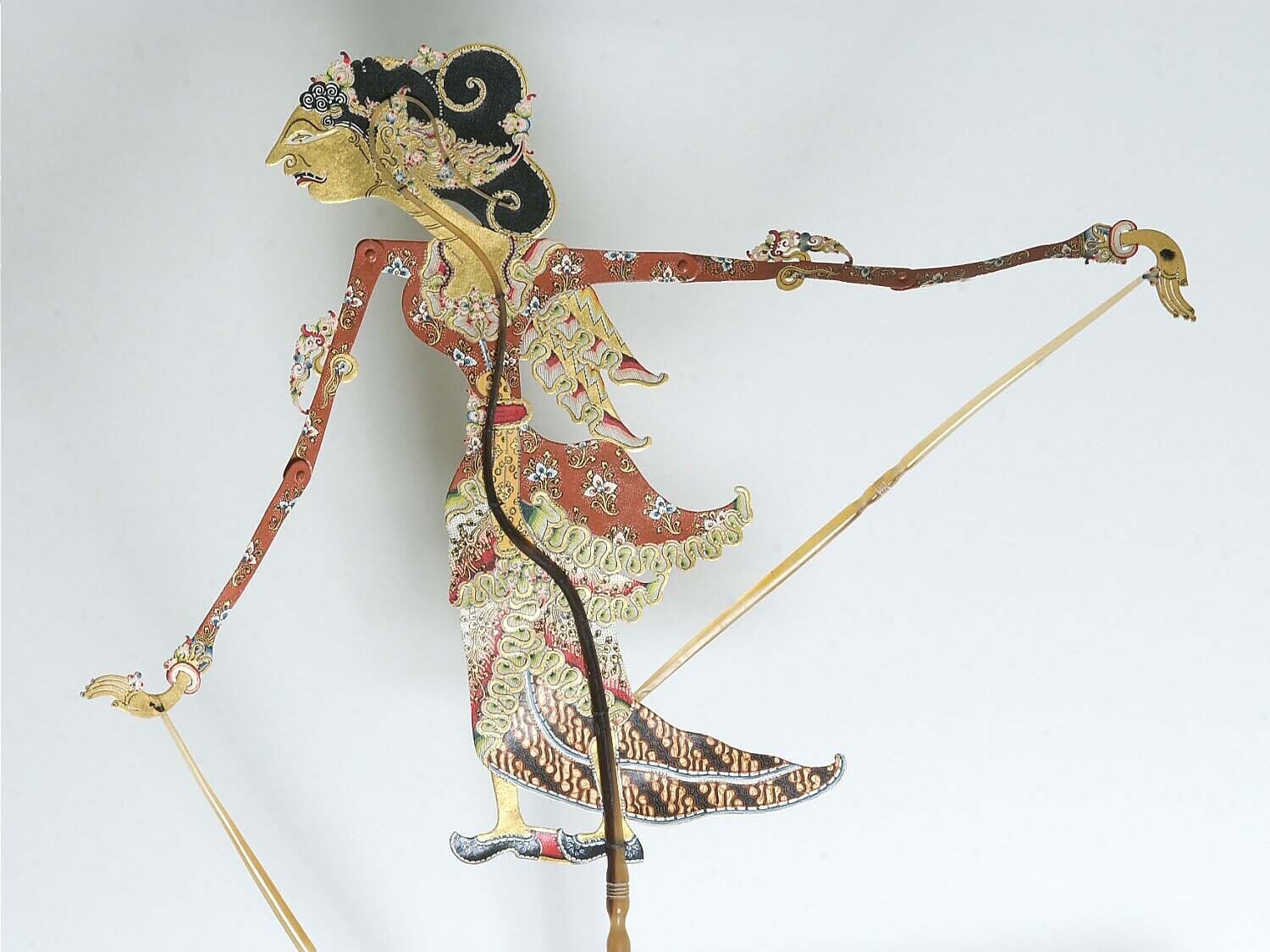 Incomplete ronde houten wayangpop (golek) voorstelle...